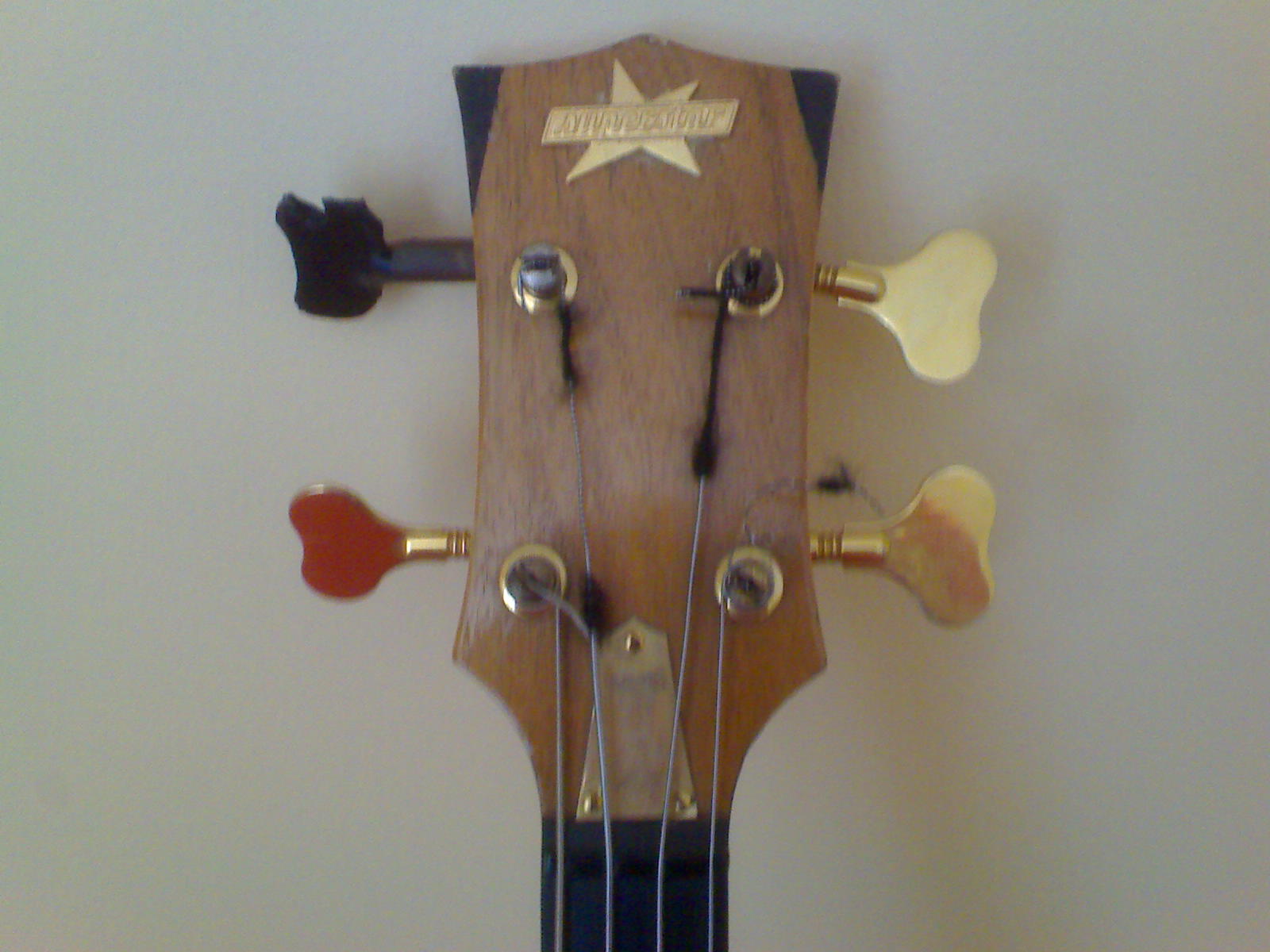 Tuhle basu jsem cca pred 14 dny zakoupil, má predelaný snímace a novej hand-made pickuard ze dreva, mám koupený nový mechaniky, chystám se zamontovat, udělal jsem z ní bezpražec,(vytahal prazce, zatmelil díry, lakoval a brousil) ted zbejvá zasadit nulták, natáhnout hlazený struny a nechat se prekvapit.
