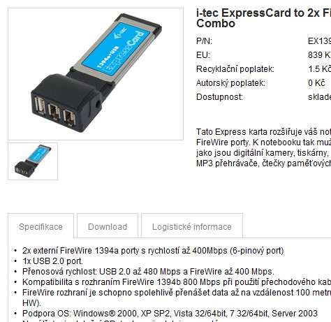 Ještě musím zmínit, pokud třeba i v tomto není háček, jak jsem již psal, mám ExpressCard i-tec 1394a+USB, začal jsem ji užívat ale až teď poprvé (kupovaná před rokem) a koukám, že v manuálu nemá podporovaný OS Win7, kdežto na Netu koukám na již nové nabízené ty samé karty a ty už Win 7 podporují, jsou ale jinak identické...?? Ale to jen pro upřesnění...viz přílohy....To by bylo aby nebylo...