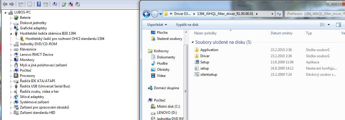 Karta je i-tec 1394a, tedy 1xUSB a 2x 6-pin porty, na PC to bylo stejné. Taky si myslím, že to bude asi v kartě. Zkusím přeinstnout vše nebo jiný NB. Dám vědět , díky