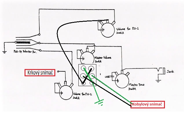 Dobý den, na mém Gretschi jsem chtěl vyzkoušet zapojit snímače mimo fázi. Zvolil jsem způsob s push/pull.