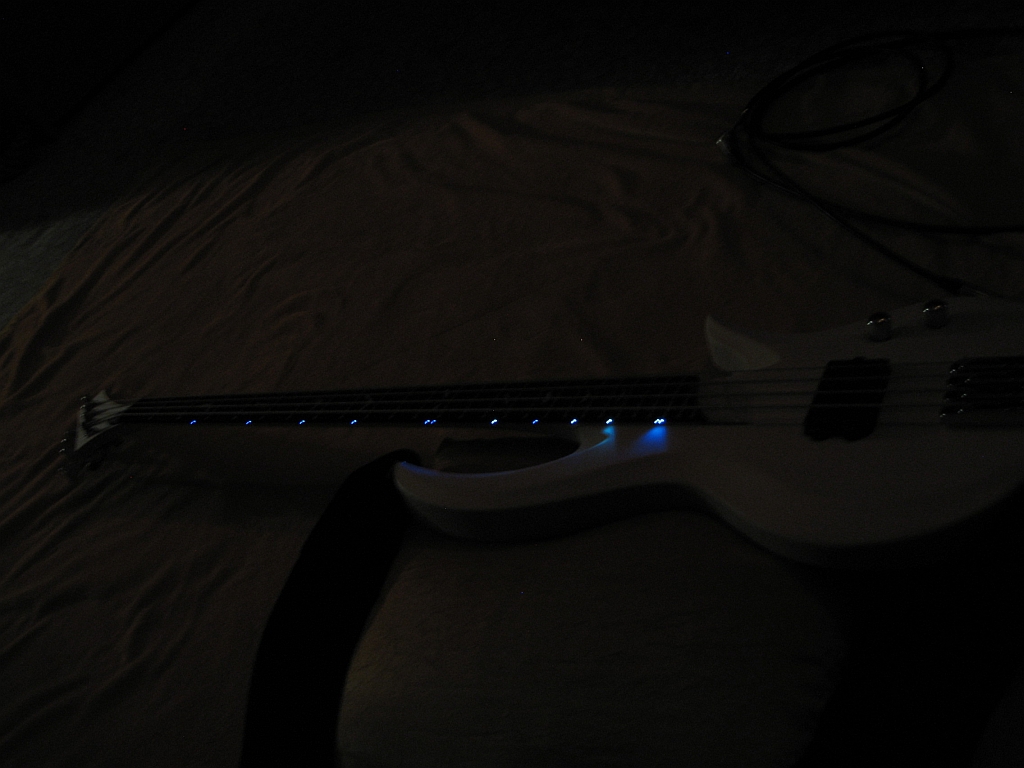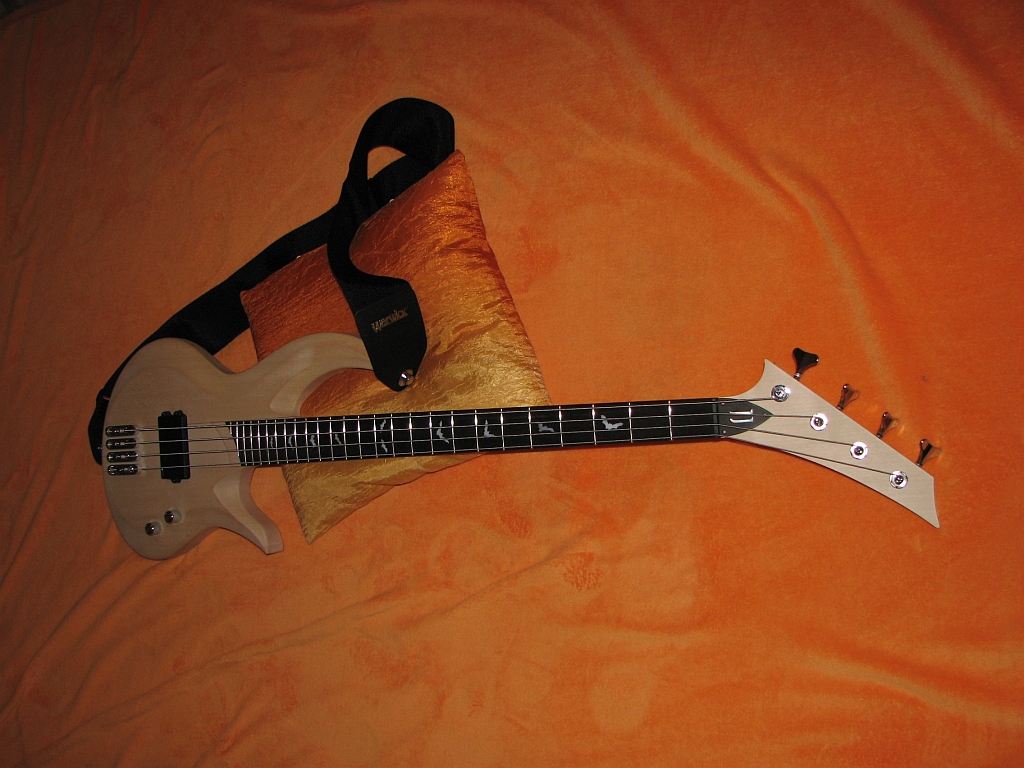 Zdarec, předevčírem proběhla zkušební kompletace basy, kterou stavím pro šváru a zároveň našeho kapelního basmana. Zatím spokojenost, drží to pohromadě, ladí to a podle mě to i slušně hraje a mě se na to dobře hraje (nejsem basák, takže je to jen můj pocit). Po vychytání much už i značky svítí jen, když je kabel v kytaře. Ovládání značně minimalistické, ale shodli jsme se, že všechny ty poty má na ostatních basách stejně jen na ozdobu. Teď už zbývá jen namořit do tmava (černá-šedá) a stříknout PU lakem. Pod stromeček to už asi ale bohužel nebude. Jinak je to javor krk s vlepenými ořechovými dýhami, křídla lípa, hmatník eben, perleťoví batmani. Mechaniky, kobylky noname china, podlaďovač Hipshot, EMG aktivní snímač s elektronikou. Pár fotek z výroby loadnu až bude hotová, ale moc jich nemám.