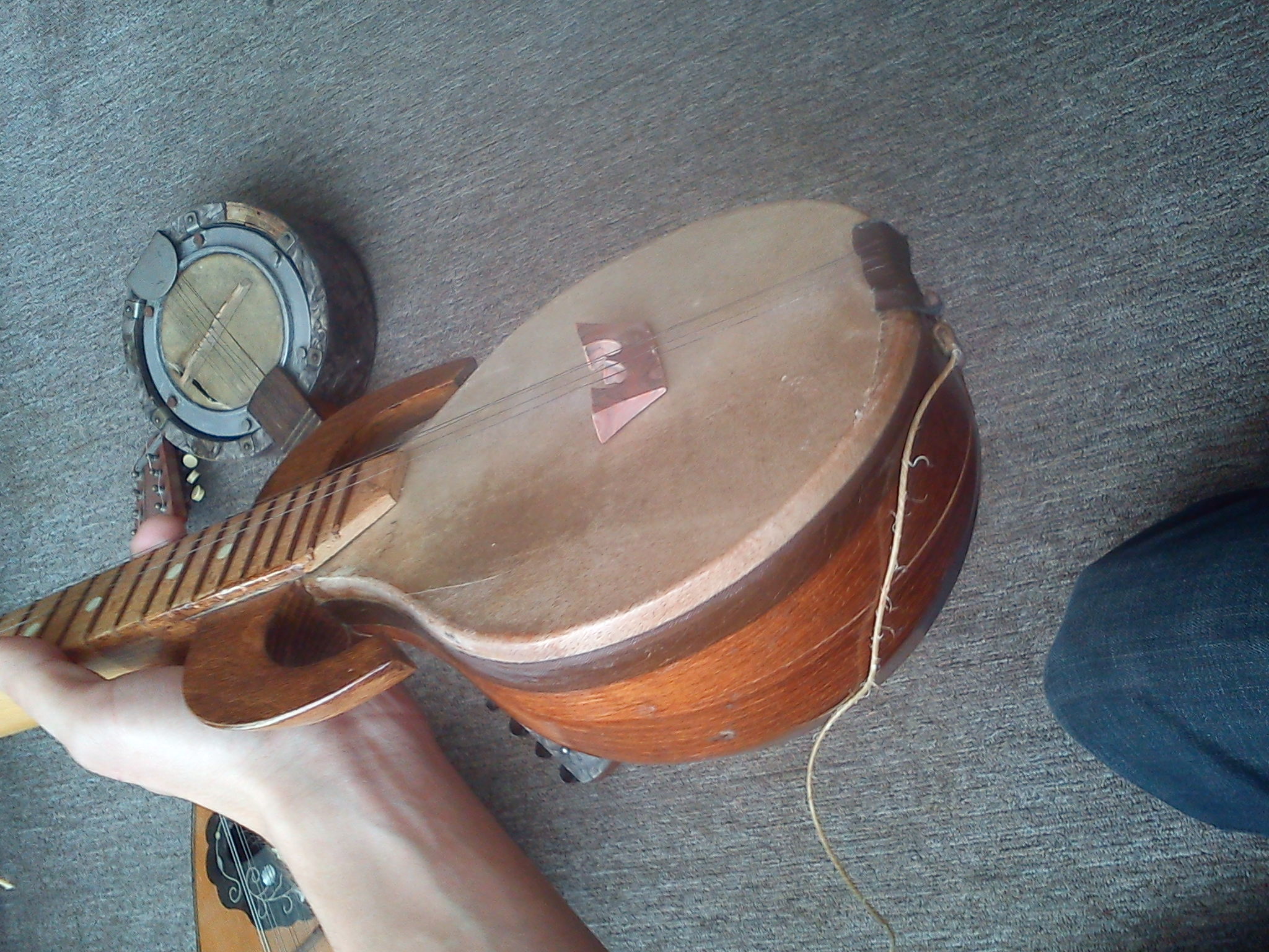 Zdravim, v Polsku se mi podarilo koupit zajmavy nastroj, nevite nekdo co je zac? Ma pet strun, dva pary a jedna basova ze strivka, kozenou blanu jako banjo a kobylku z kamene.. Za smesny prachy sem k tomu dostal i rozpadlou banjo mandolinu, uz se tesim na renovaci