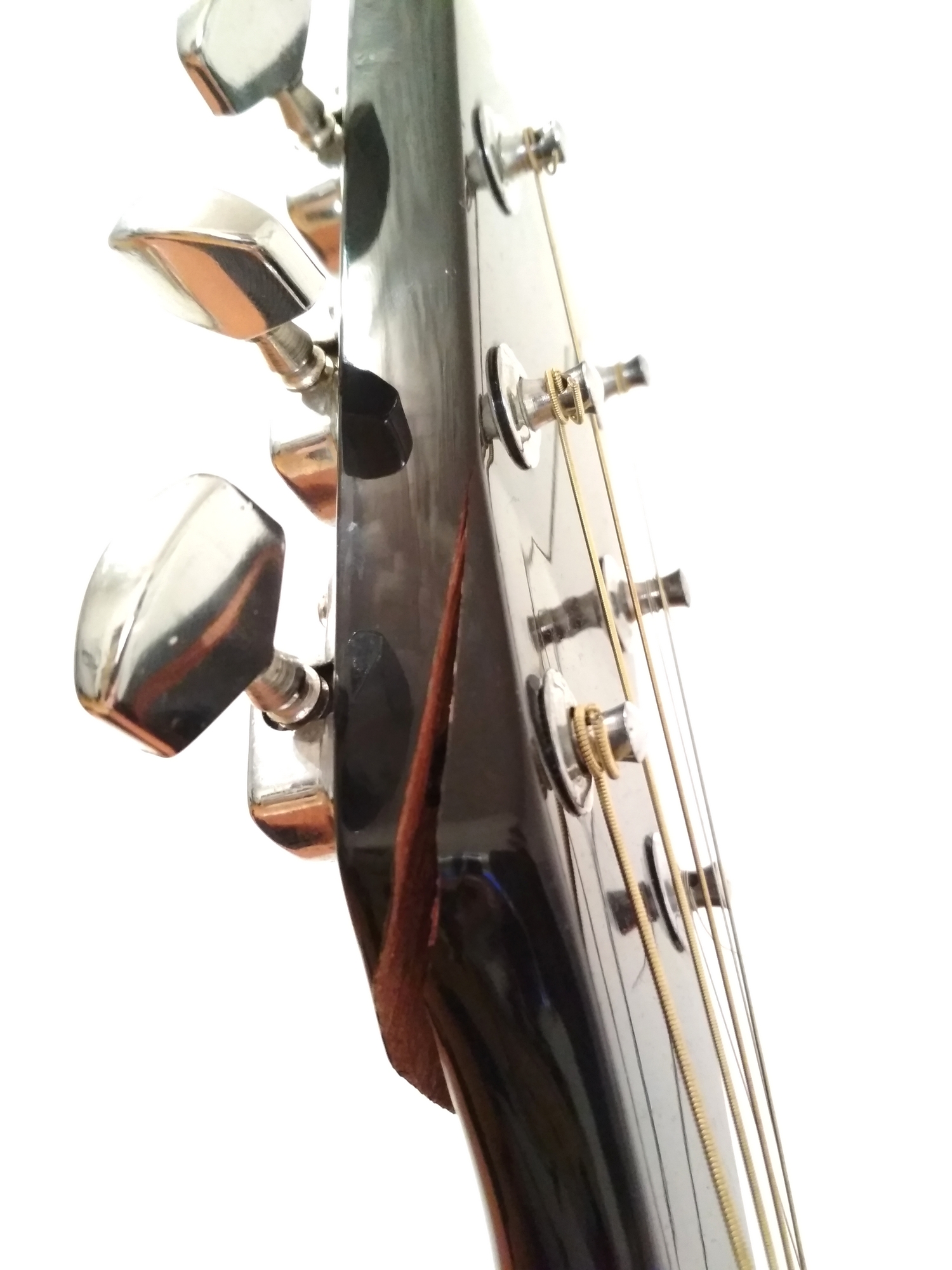 byl jsem trochu nešikovnej a podařilo se mi shodit kytaru a praskla u ní hlava. Přikládám foto, prasklo to přímo po struktuře dřeva, ale neoddělila se úplně, Všechno ostatní je neporušeno.