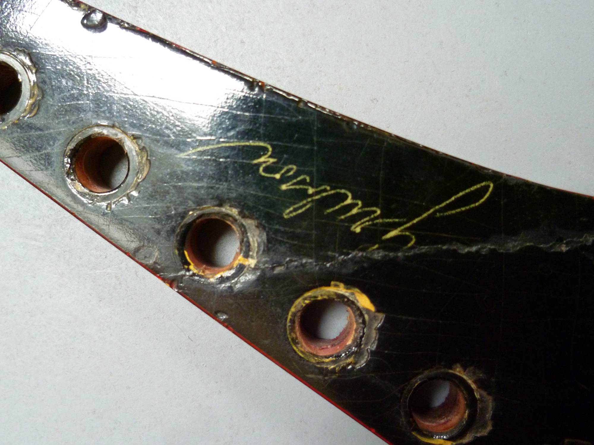 :D Chlapi, ty dvě kytary, resp. torzo a kytaru jsem měl osobně v rukách. Šlo o pozůstalost po nějakým muzikantovi z Náchodska. Byl jsem požádanej kamarádem, abych posoudil pravost a zkusil odhadnout cenu, protože člověk, co na ně hrával je již x let posmrti a své manželce, současné majitelce, tvrdil, že ty kytary mají obrovskou hodnotu. Na ty kytary se hrálo možná před nějakými 40-50 lety a na první pohled jde o práci nějakýho kutila. V žádným případě nejde o žádnou novodobou čínskou produkci. Obě kytary byly dost zajímavě řešený, uvnitř jsou dutý, ale předpokládám, že byly vyráběný možná podle nějaký fotky a na to nevypadaj vůbec zle. Na tý černý bylo vidět, že se na tom dotyčnej učil, ale ta druhá už byla velmi pěkně zpracovaná. Všechno bylo teda už dost orezlý a chtělo by to dost práce, než by to bylo hratelný a ani zapojený jsem to neslyšel, takže nevím, jestli elektronika vůbec funguje, ale ta kytara mě fakt mile překvapila a jako amatérský bastlíř jsem musel uznat, že ten, kdo ji dělal byl celkem šikovnej. Samozřejmě tenkrát asi neměl u hardwaru žádný výběr, takže těžko můžeme kritizovat výběr ladících mechanik apod., ale i tak mě překvapilo, kde dotyčný splašil takovou pěknou kobylku a evidentně zahraniční snímače. Ta novější kytara (s pruhy zezadu a průhledným lakem) má krásně udělanou klenbu přední i zadní desky. Asi nejzajímavější z celý tý sbírky bylo to kvákadlo. Kde se v tý době dalo přijít k originál Voxu netuším, ale podle čísla je to pěkně starý kousek a myslím, že by dneska mohlo mít docela hodnotu, narozdíl od těch kytar. Byly u toho ještě snad i nějaký prastarý mikrofony, po kterých by možná nějaký sběratel hrábnul.