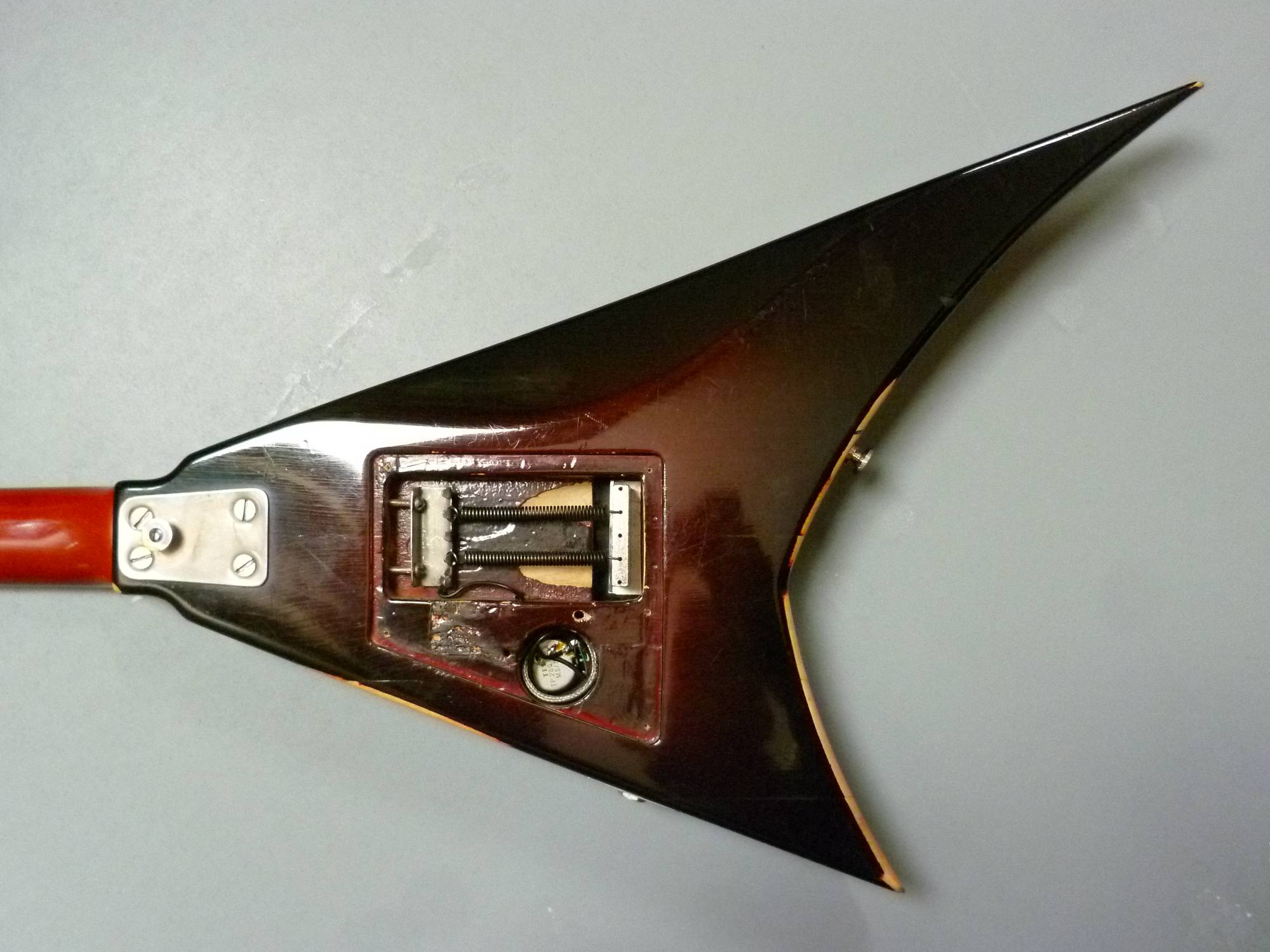 No, viděl jsem fotky raných japonských lawsuitů, které vypadaly hodně podobně. Základ klidně může být v nich. Nebo taky někde zcela jinde. Každopádně to je smutná ukázka toho, jak ošklivě se dá kytara seskládat.