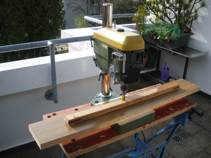 ten teplý podzim se mi zamlouvá. Předevčírem jsem vyzkoušel mojí stolní vrtačku Proxxon TBH s tvrdokovovou frézou 19 mm Ø pro srovnání mírně prohnutého kusu z dubového dřeva, starého přes 50 roků. Při 4500 ot/min, vznikají jen drobné třísky, ale skoro žádný prach, jako u vysokoobrátkové horní frézky.