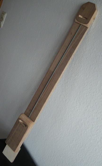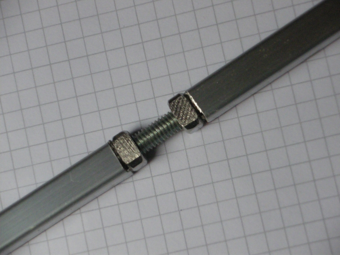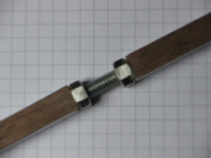 Vlastní dělená výztuha bude ze závitové tyče M6, zakotvená uprostřed, a napínatelná matkami M6 po obou stranách v těch příčných výdlabech. Aby se při seřizování neprotáčela, bude tyč zalitá epoxidem v hliníkovém "U"-profilu. Foto později.