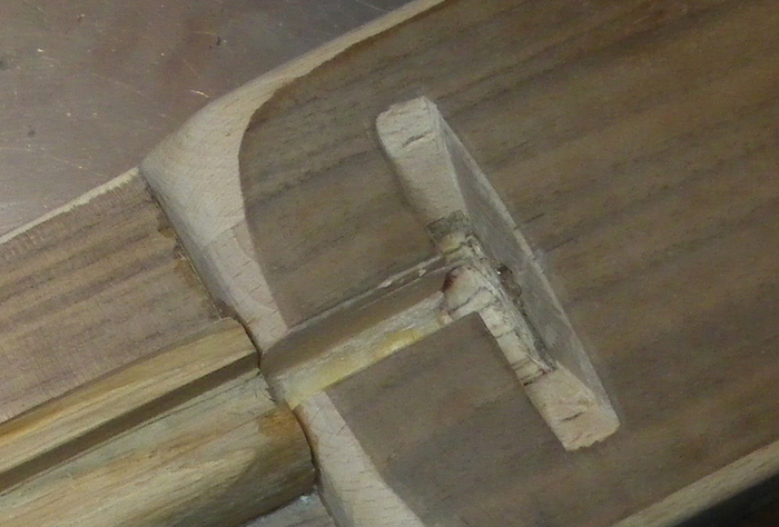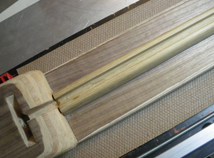 Po ručním začištění povrchu brusným papírem ten díl nalepím epoxidem pod "krk" tapperu a zamontuju do té drážky výztuhu ½ na ½, která umožňuje seřizovat jednak celkové prohnutí a k tomu odděleně spodní a horní část hmatníku. Jak to funguje, budy vědět až budou natažené struny. A to bude ještě pár dní / týdnů trvat .... :roll: