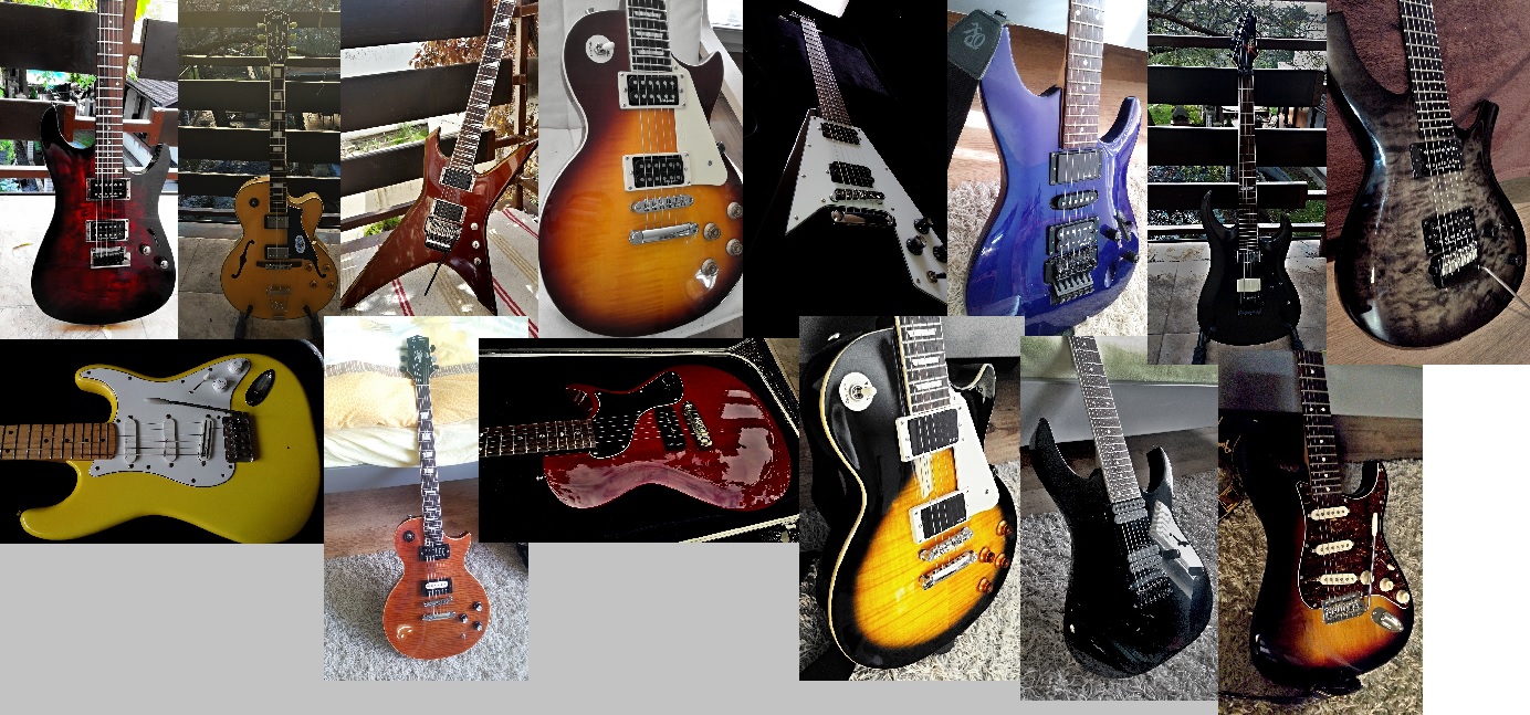 Jo, kromě toho fake Gibsona bylo všechno moje. Ještě jsem si vzpomněl na Eleca Stratocaster a Tenson Stratocaster