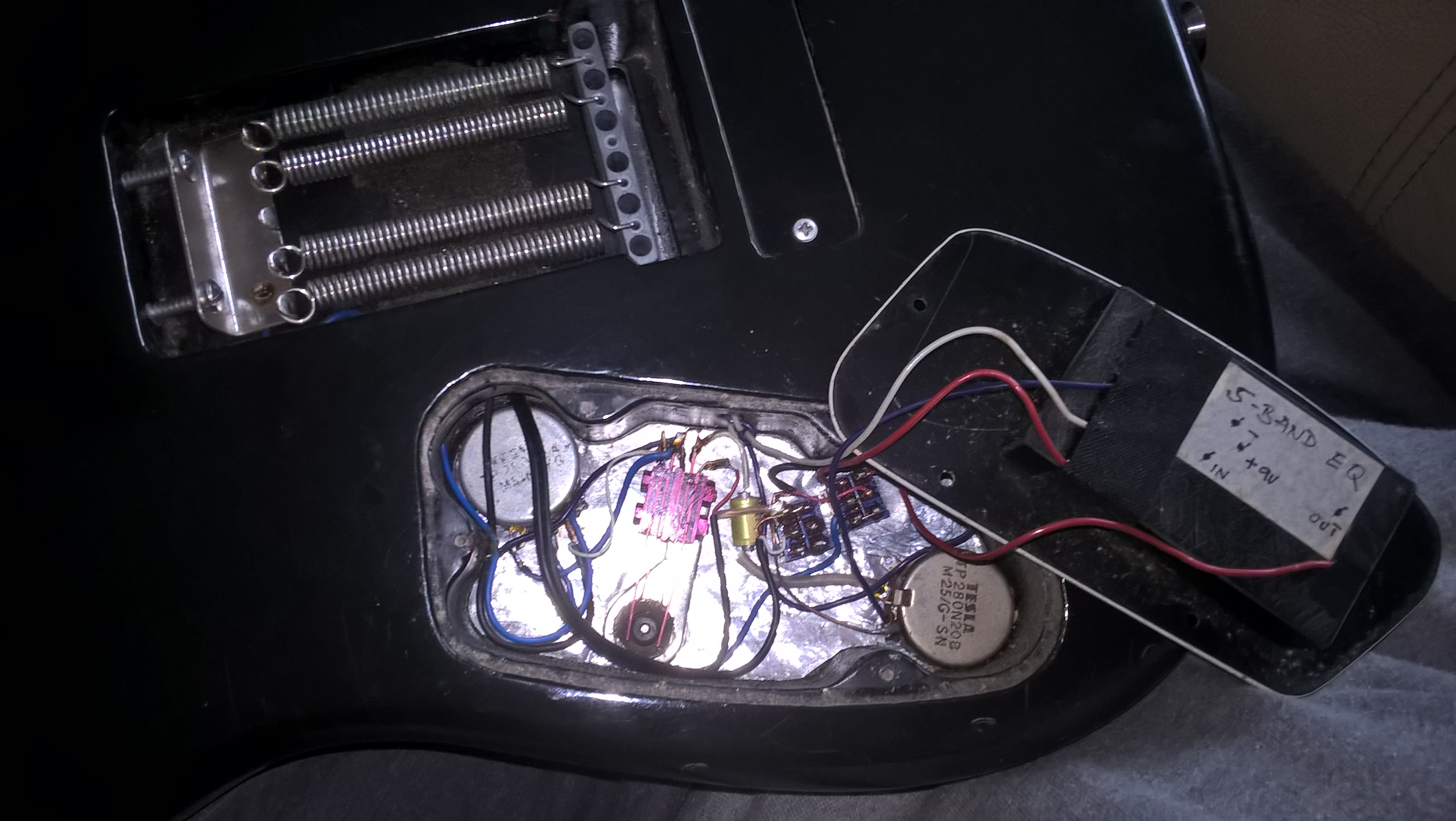 Je osazená snímači 1xHb a 1xsingle jeho vlastní výroby,z toho jeden je aktivní.Vzadu 5ti pásmový EQ.