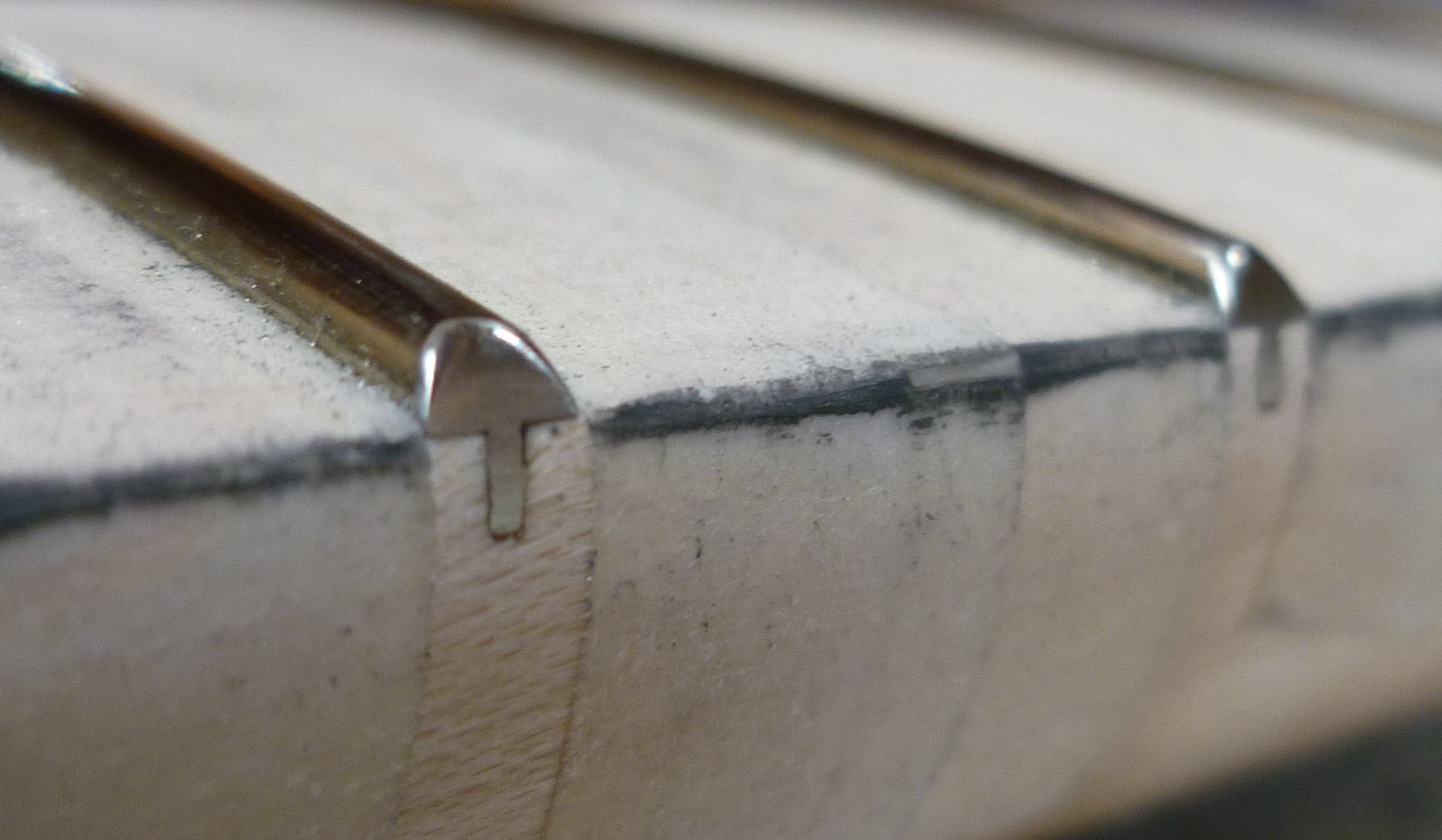 Ja by som podotkol že treba rátať so s brúsením rádiusu ,číže drážky treba narezať o niečo hlbšie ,pri 10" rádiusu som rezal 4 mm hlbokokmensik píše:Podle stojiny (praporku) pražcového drátu + nějakou desetinku mm vůli. Není pěkné, když je drážka o moc hlubší než drát.