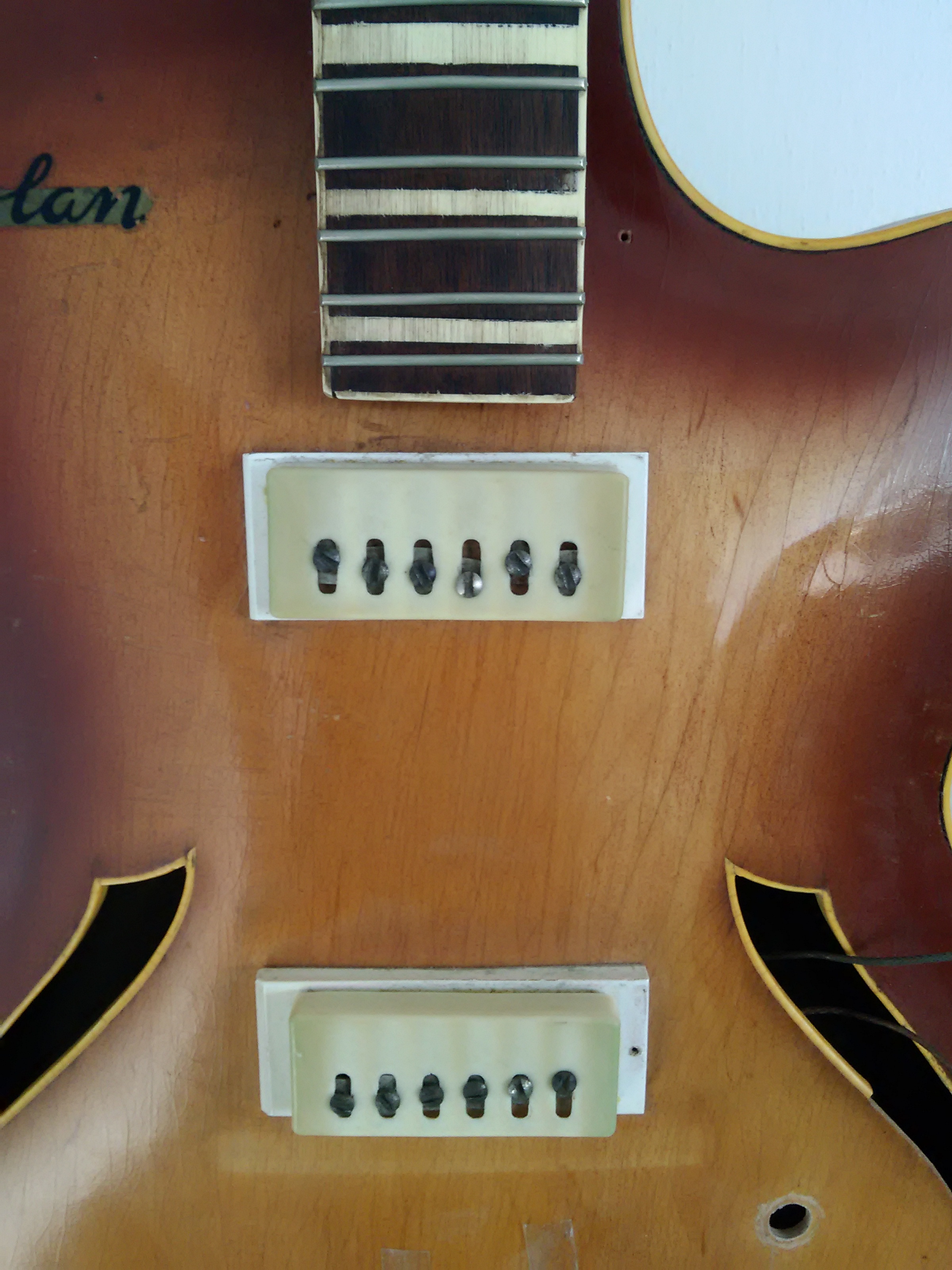 Měly by jít předělat tak, aby se nemusely lepit, nějak na stávající dírky na vruty. Každopádně bych snímače nechal opravit, třeba i převinout na silnější výstup a posílit magnetické pole, ale nechal bych je v původní historické podobě.