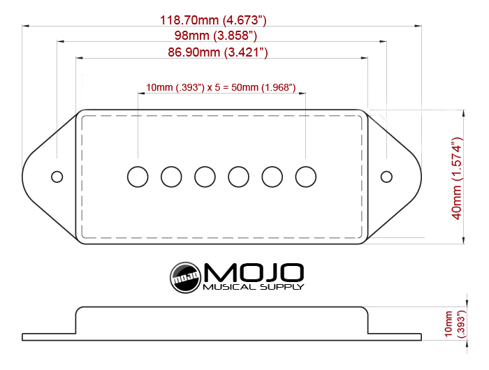 proč by mělo být ideální měnit na P90 kryt? Záleží na tom jestli z toho chceš mít hratelný nástroj, nebo pouze sběratelský kus. V prvním případě osaď P90 tak jak mají být bez kompromisů a nevytvářej nějakého "kočkopsa". Když si koupíš P90 s krytem "s ušima", budeš je moci přišroubovat na kytaru také jen dvěma šroubky, jen rozteč bude (pravděpodobně) jiná. Rozměry jsou na obrázku: