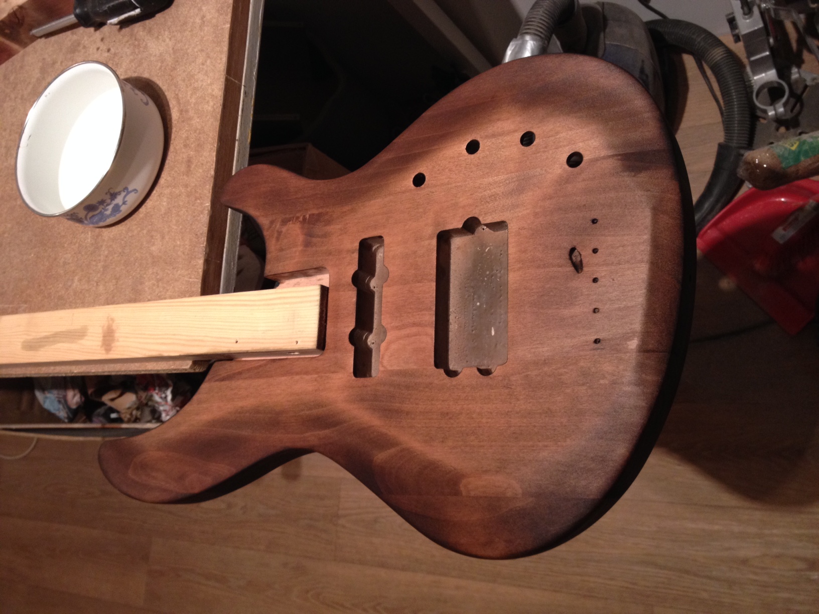 U mě konečně proběhlo moření a jakýs takýs sunburst a začal jsem s tungovým finišem - směs podle cestadreva.cz, tj. Tungový / kaméliový / citronový 10:1:0,5 , foto po 1. vrstvě, cca po 10 minutách setřena nevsáknutá směs.