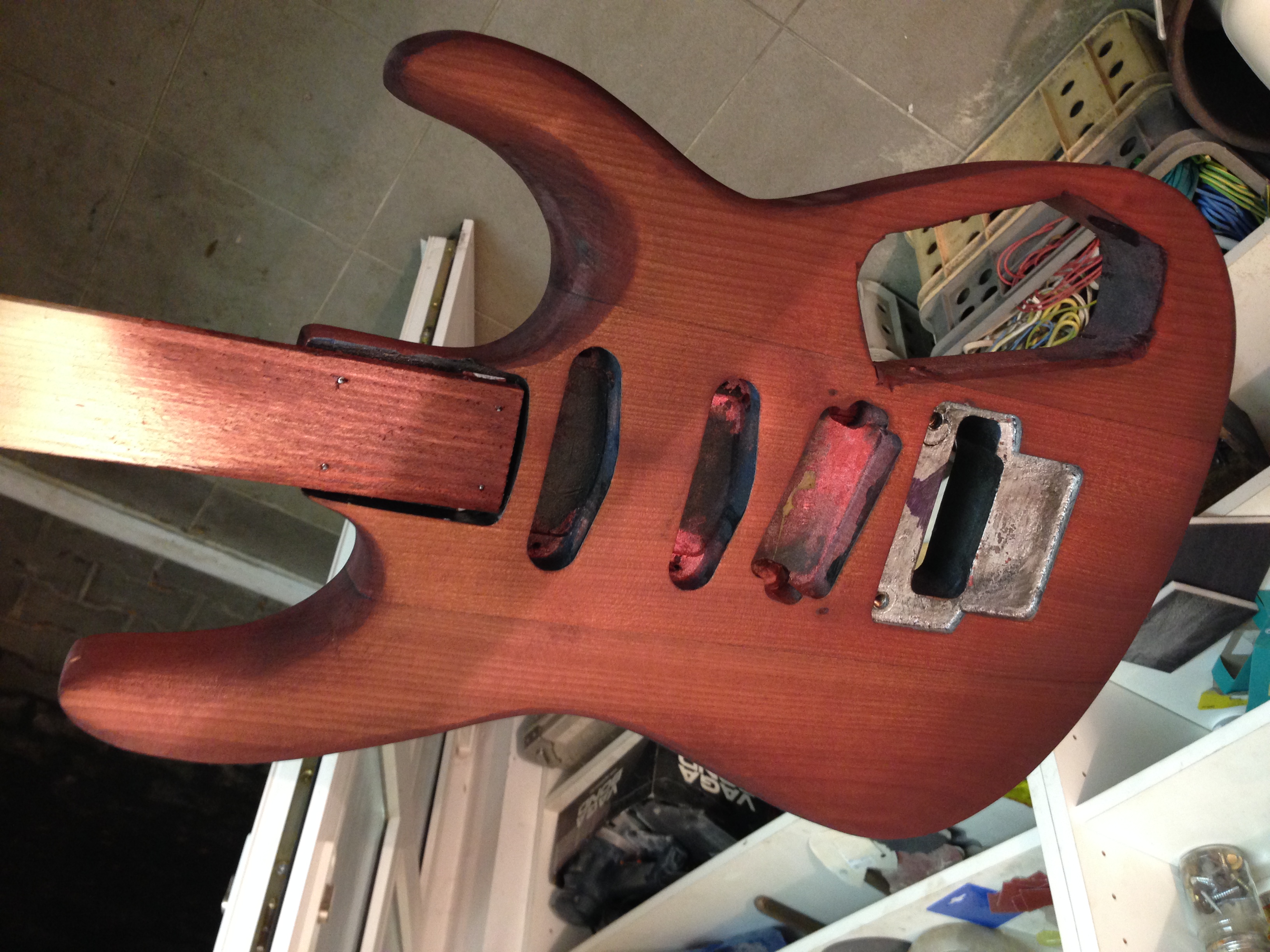 Hmmm, nevadí. Díru (je to díra, lak je moc tlustý) zaplníš tmelem, polyesterovým, mají ho všude. Může to být i dřevotmel (plněný pilinami) i autotmel (plněný bůhvíčím). Jsou rychleschnoucí, zpracovat do 5 min, brousitelno do 15 min. Přebrousit do ztracena, prostě do hezka, žádný přechod mezi dírou a ostatkem kytary. Pak stříknout černě, přebrousit. Stříknout černě, přebrousit. Natřikrát to musíš mít. Poslední vrstvu přeleštíš.Placka píše: Lak na autě jsem ještě nespravoval, takže to mi moc nepomohlo.