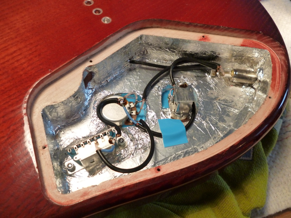 Začínám osazovat elektriku a trochu jsem si pohrál s podložkou pod šrouby k upevnění krku k tělu.