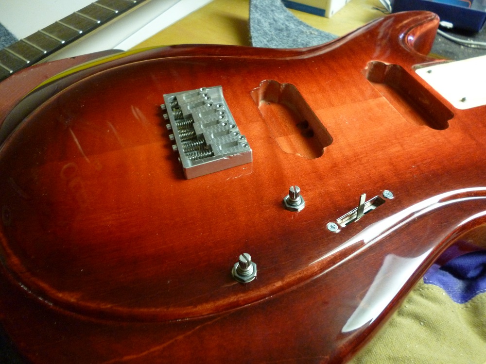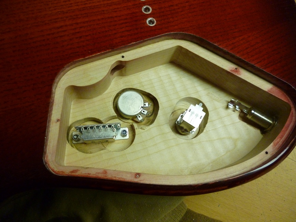 Začínám osazovat elektriku a trochu jsem si pohrál s podložkou pod šrouby k upevnění krku k tělu.