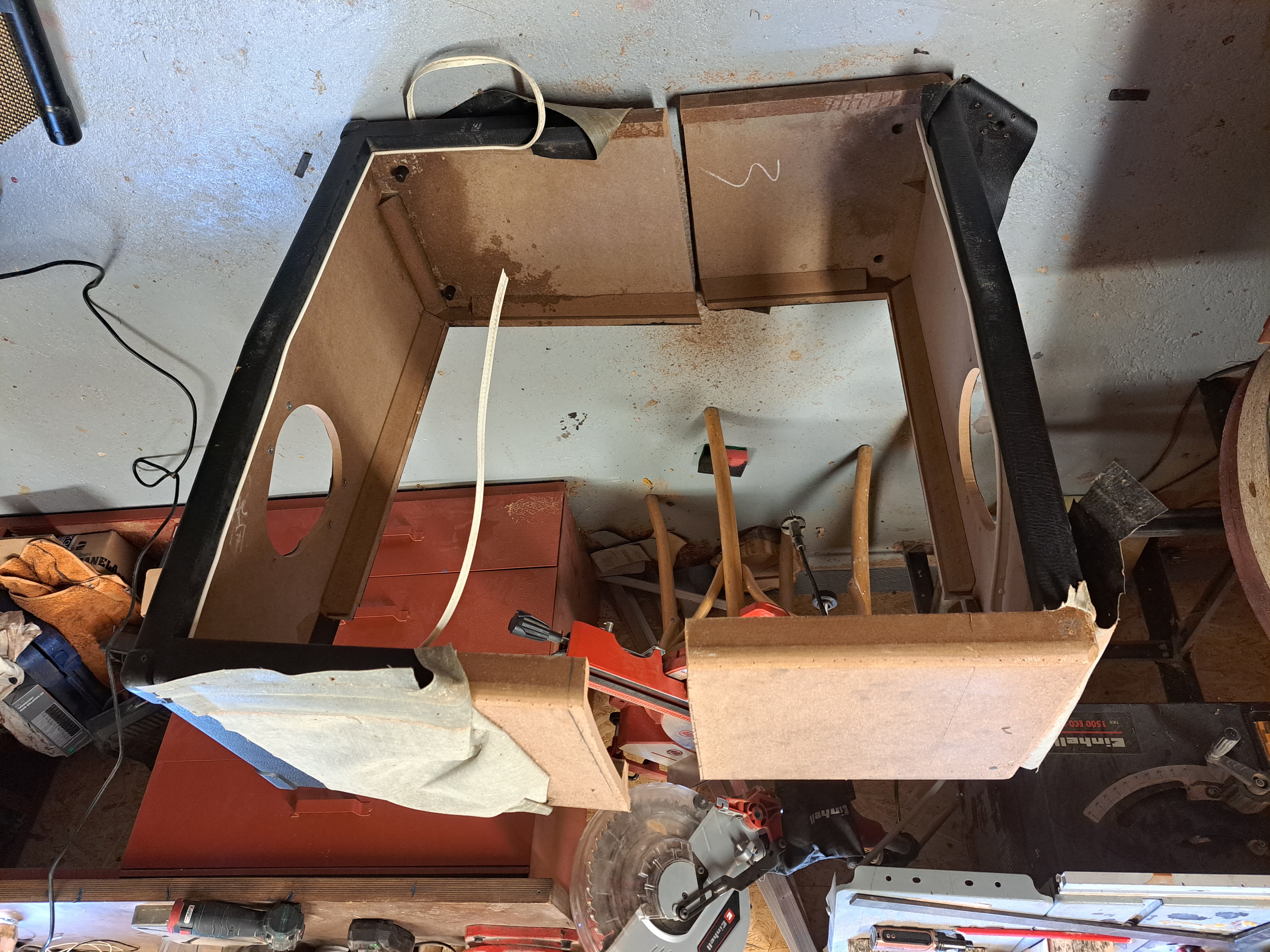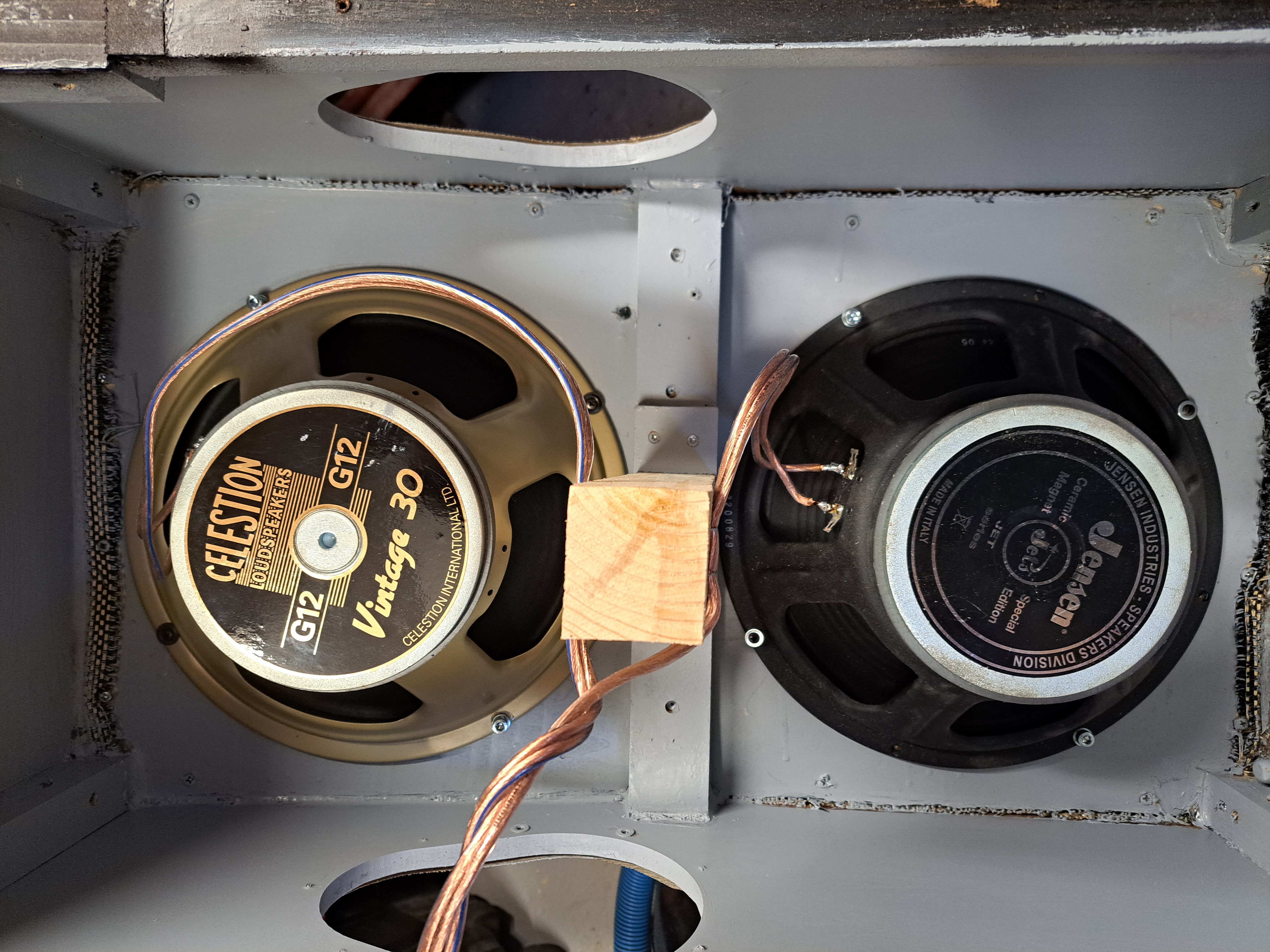 Chtěl jsem vertikální áčko 2x12, tohle mě vyšlo na pár stovek. Repra jsem měl doma, box jsem sehnal za 1500Kc. Repra z Kustomu jsem ještě ve finále rozprodal. Jedno odpoledne v dílně a bedna byla poloviční. Ale souhlas, že material nicmoc lowcost mdf. Natřel jsem to, aby to nesálo vlhkost, poslepoval prošrouboval a doplnil vyztužné hranoly. Nechtěl jsem do toho moc investovat a 2x12 vertikal byla dost omezená nabídka.