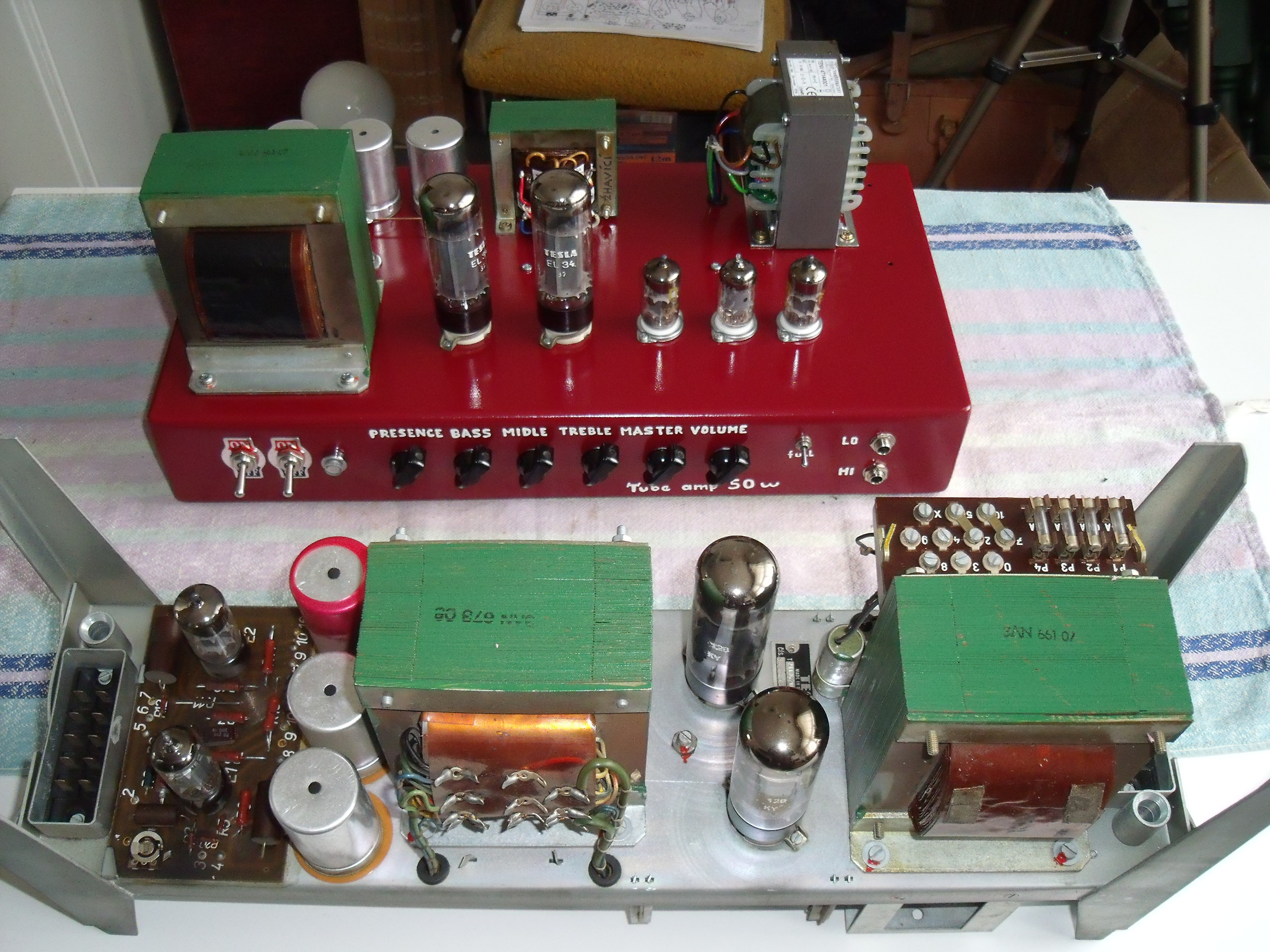 Přestavba koncáku Tesla AUJ - 620 na kytarový 50 W zesilovač ( ECC83S, E83CC, ECC803S, 2 x EL34 )