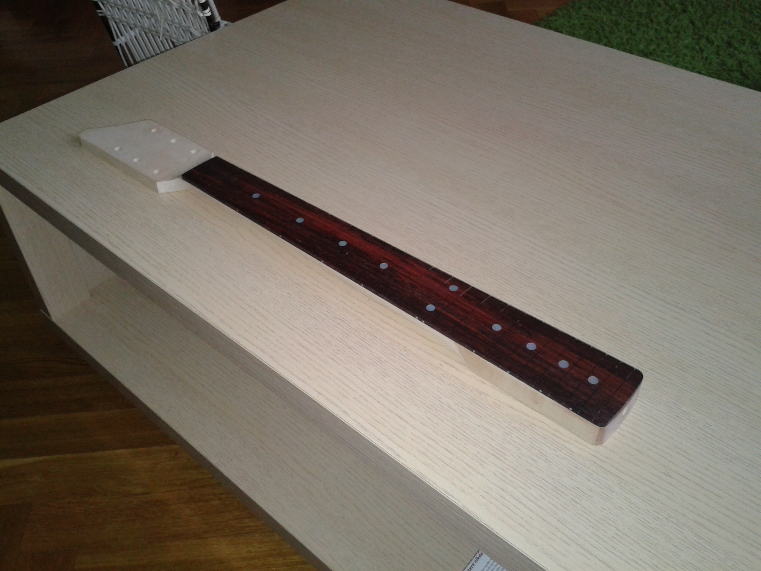 Ahoj, po delší době jsem se zase dostal k práci na krku. Vyzkoušel jsem vypodložit v.gumou středpain2 píše:Pokud je natěsno na koncích, tak to neřeš. Ona se nepohne, ale na střed to podkládám zespoda a mezi ty tyče vulkanizační gumou. Ty části jsou na volno prakticky a když se to utáhne jen trošku, má to tendenci vibrovat nepříjemně o dřevo a tohle to eliminuje. Pokud máš konce ale hlouběji pod úroveň, kdy by to nestiskl hmatník, tak i pod ty konce dávám pásky, ale dávám si na to pozor, aby to výškově bylo úplně napřesno s povrchem krku