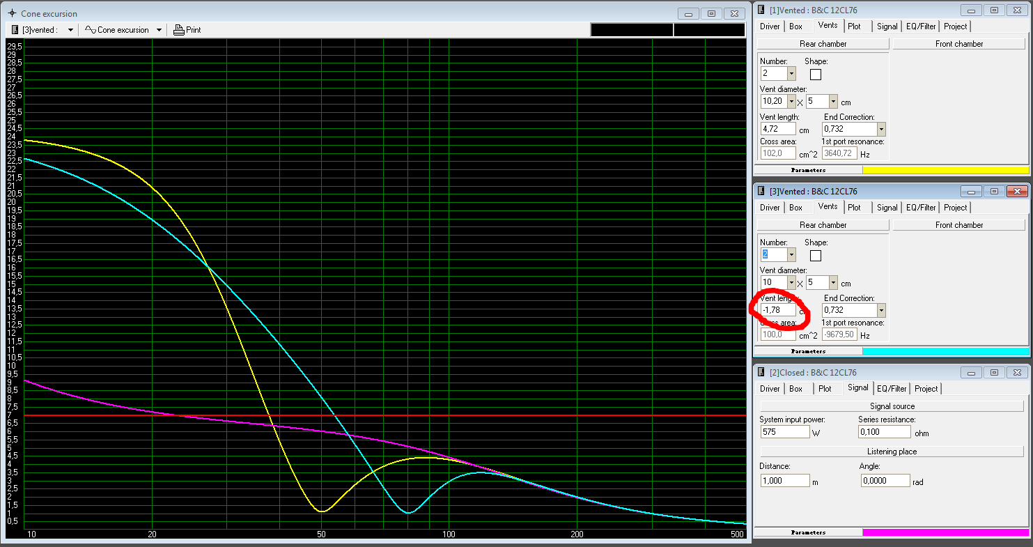 Když to naladim do 80Hz, tak mi délka basreflexu vychází v zapornejch číslech a cone excursion je furt přes Xmax.