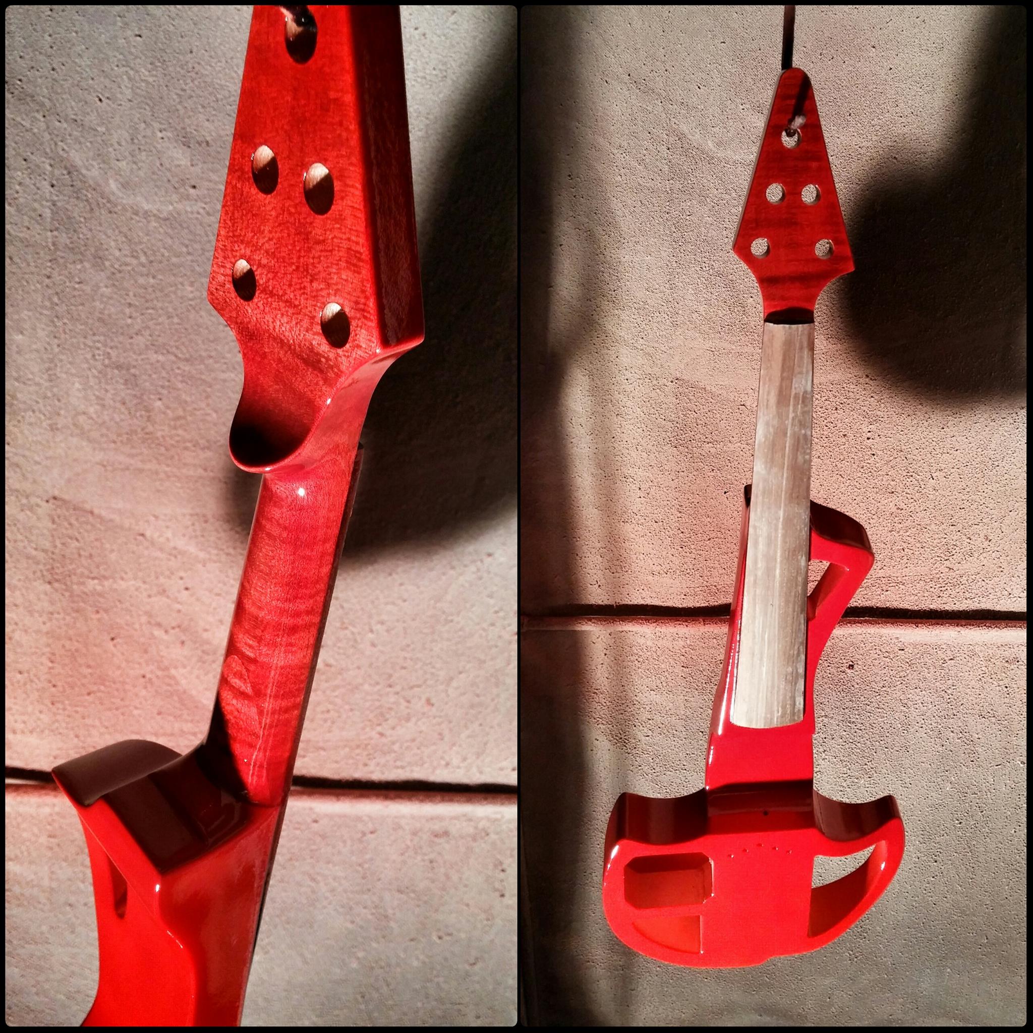 Krk je úplně rovný. Každopádně jde o to, že nižší frekvence zní líp na delší menzuře, ale už se blbě soluje při bendingu, kdy o 1 ton musím hodně tahat strunu. Tohle to pěkně vyřeší a zkombinuje.