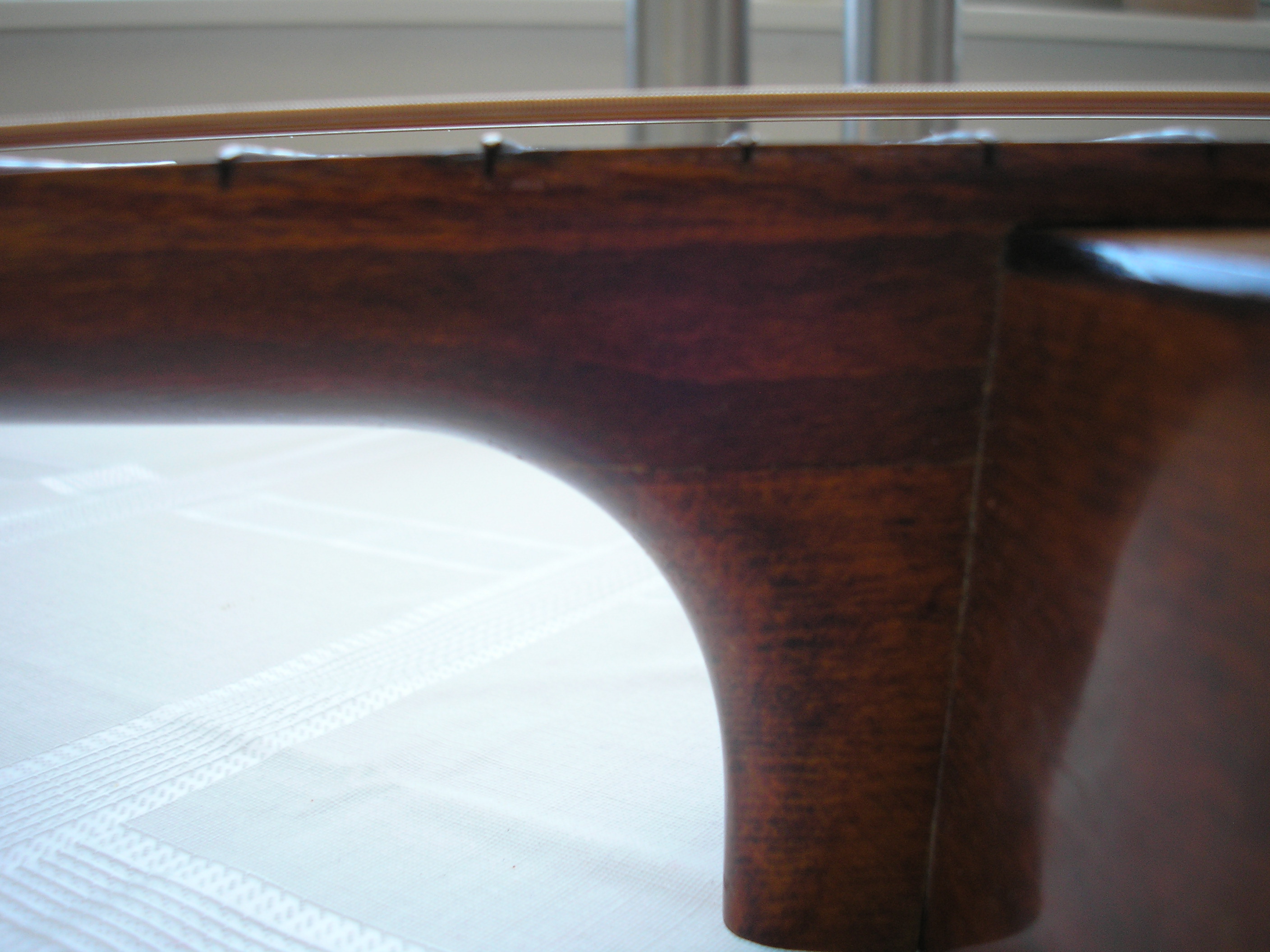 Ku výměně kolíku - ano, šikovná ruka vymění leccos, ostatně - polovina mechanik je stejně jiná než původní. Prostor u krku - tím myslíš chybějící patku uložení krku? To na hru nemá vliv. Horší by byly praskliny - odchlíplá zadní deska od lubů - znak počínajícího vytržení krku z korpusu. To ale na obrázku nevidím. Vrypy na krku také nevidím, ovšem semotamo nějaký ďoubanec je u staré kytary normální, zvláště u tohoto typu, který je určen spíše na pádlování (u vodáků) či omlacování se po lesích a vlhnutí v trávě (u čundráků). Ku normálnímu hraní se to nehodí.