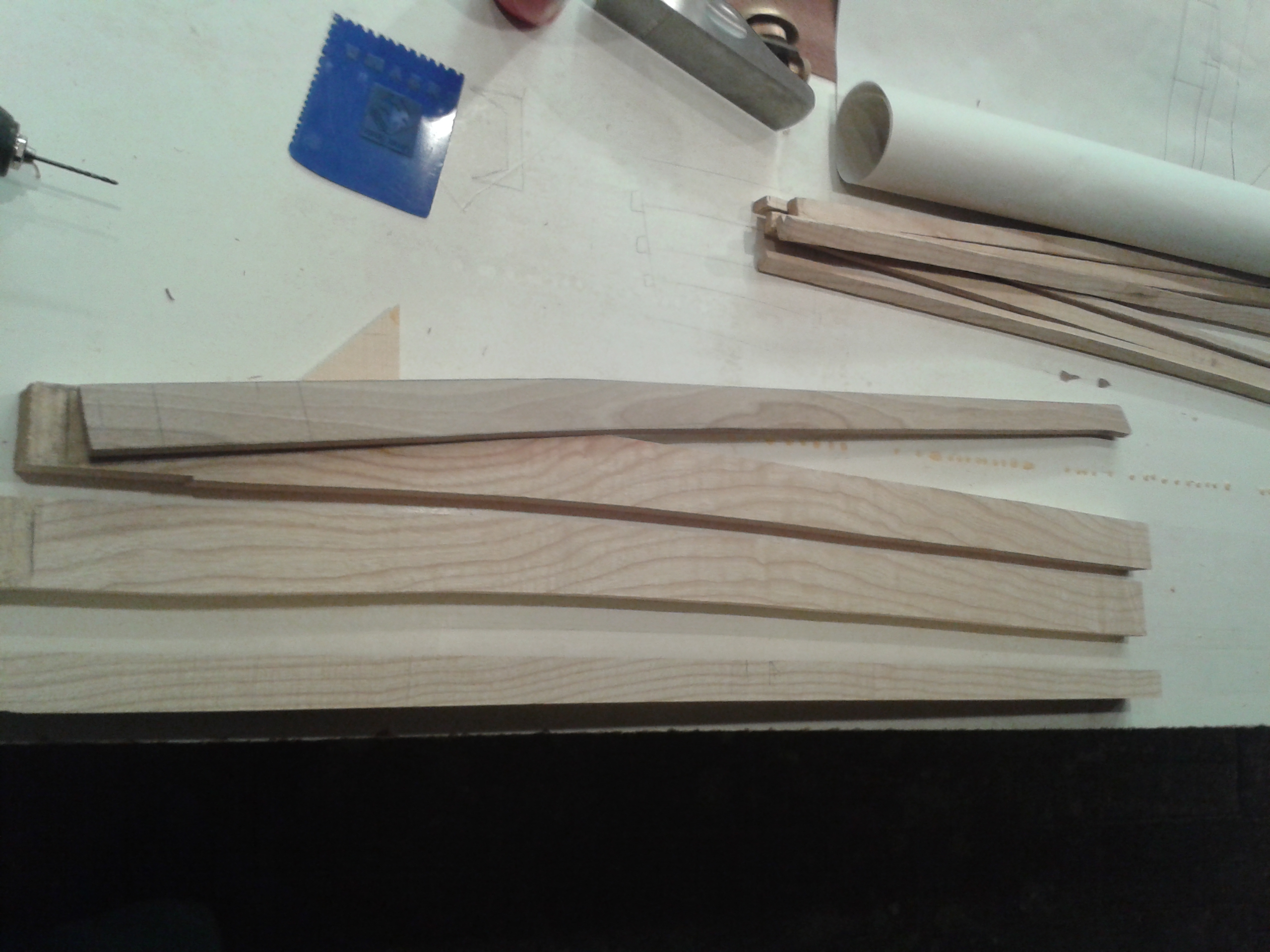 Krk vyhoblován a nařezaný pražce. Uvidíme jak dopadne dohmat, jelikož nemám výztuhu krku.