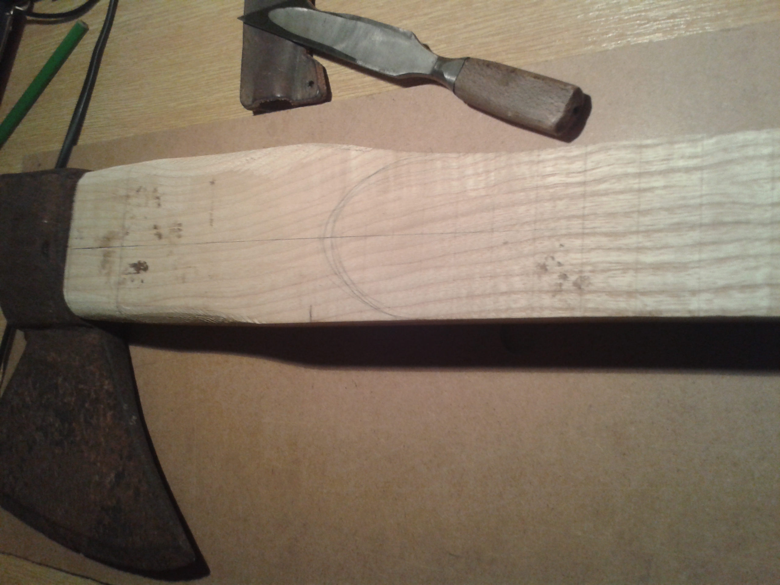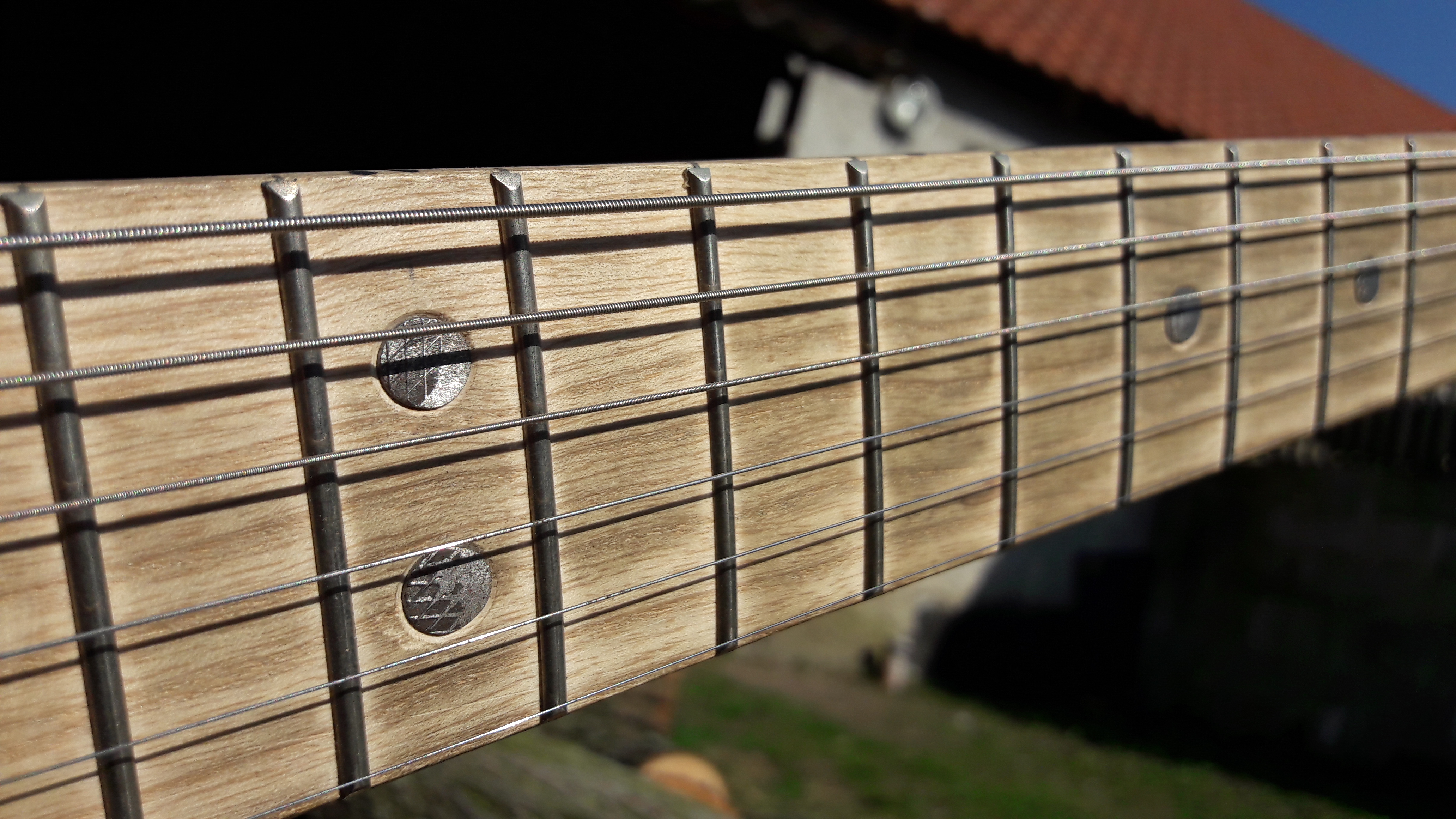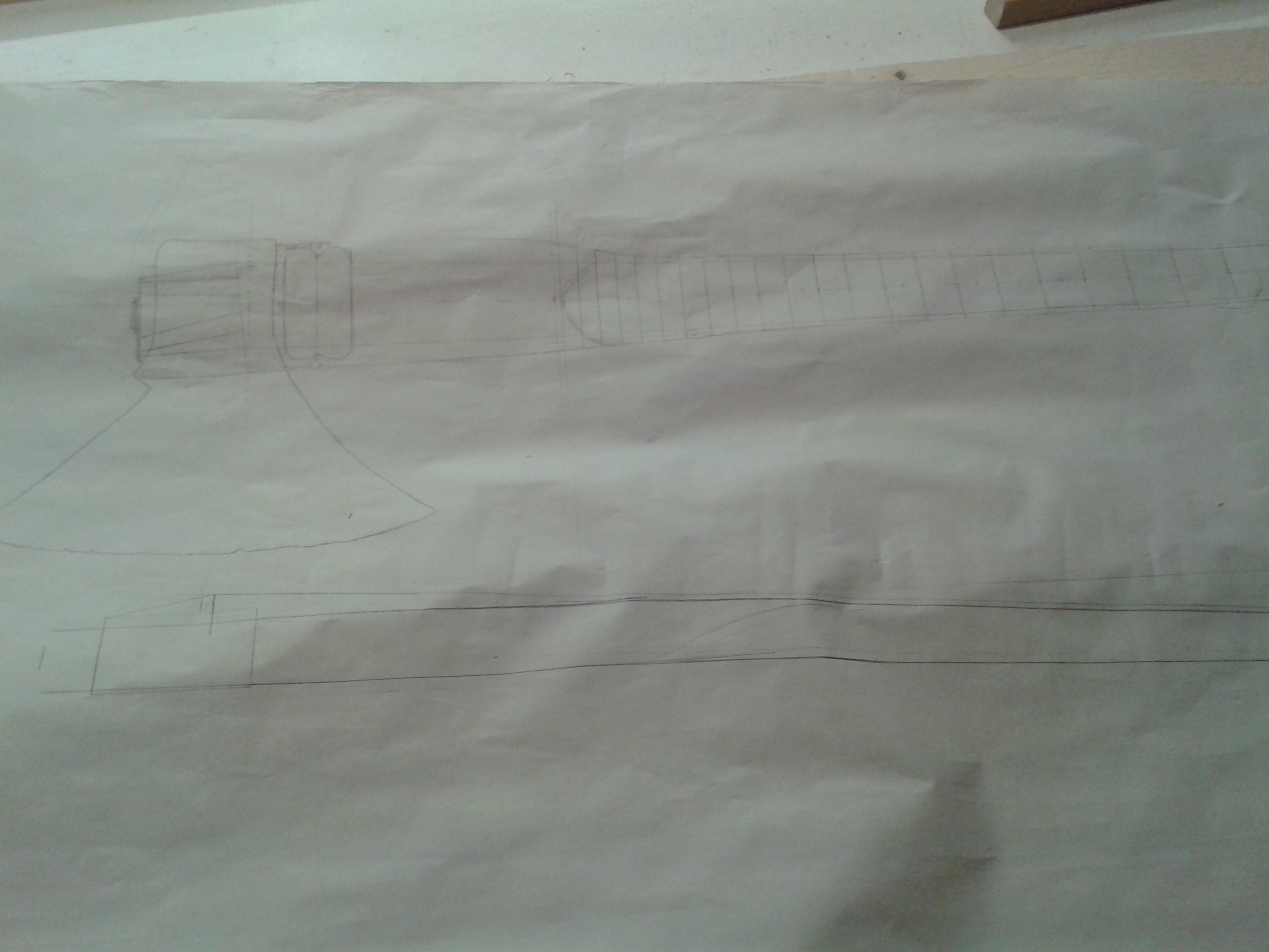 Štípat dříví na zimu s tím každopádně nebudu, ale přišlo mi to zkrátka jako zajímavý nápad kytara z nářadí. Jinak topůrko je jasanový, menzura bude 629mm, snímač 1 humbucker u kobyly a 1. poťák volume (to se jeste rozmyslim). Kobylku si budu vyrábět (nejspíš bez regulace).
