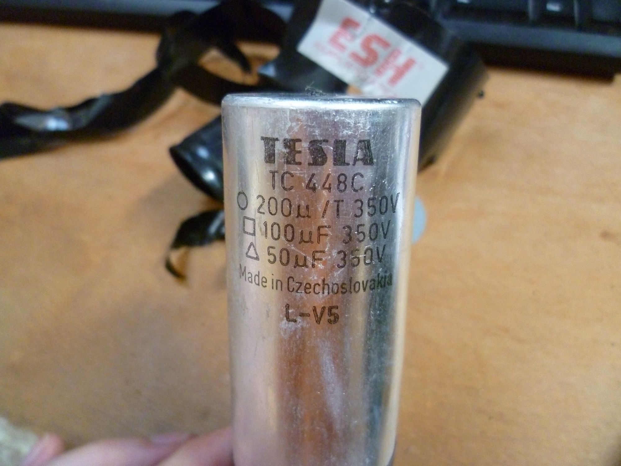 Já jsem pokročil s výměnou filtračních kondů v ESH. Povedlo se, funguje. Ty staré jsem odhadl přesně, jsou to staré dobré "Znáte z TV". Nejspíš by ještě sloužily, ale to promáčknutí se mi fakt nelíbilo. Na druhém kondu je to stejně.