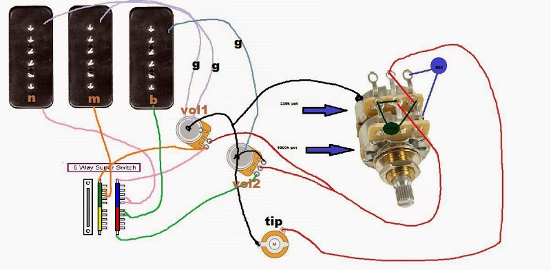 strat bude mít klasicky 3 snímače 2 singly a HB u KRKU! .. chtěl bych aby měl HB vlastní poťák hlasitosti (push/pull na rozepínání) kterej bude jako čtvrtej (před těma 3ma klasickýma) další poťák bude klasická hlasitost pro ty zbylé 2 snímače (taky push/pull na odbočku vinutí