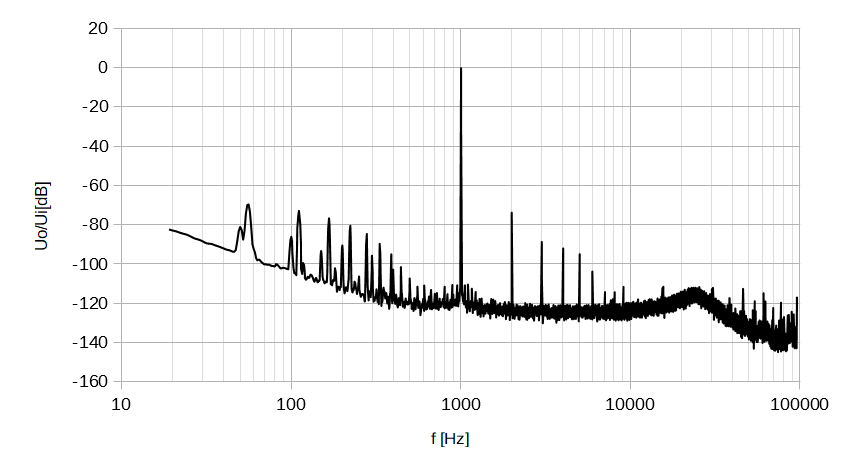 Tak vznik vyšších spektrálních čar už jsme si objasnili. Otázkou je, jestli vznikají vlivem harmonického zkreslení analogové části nebo při převodu analog - digitál - analog... Pokud seženu někoho, kdo mě pustí do laborky se spektrálním analyzátorem, zkusím zjistit, kde to vzniká...