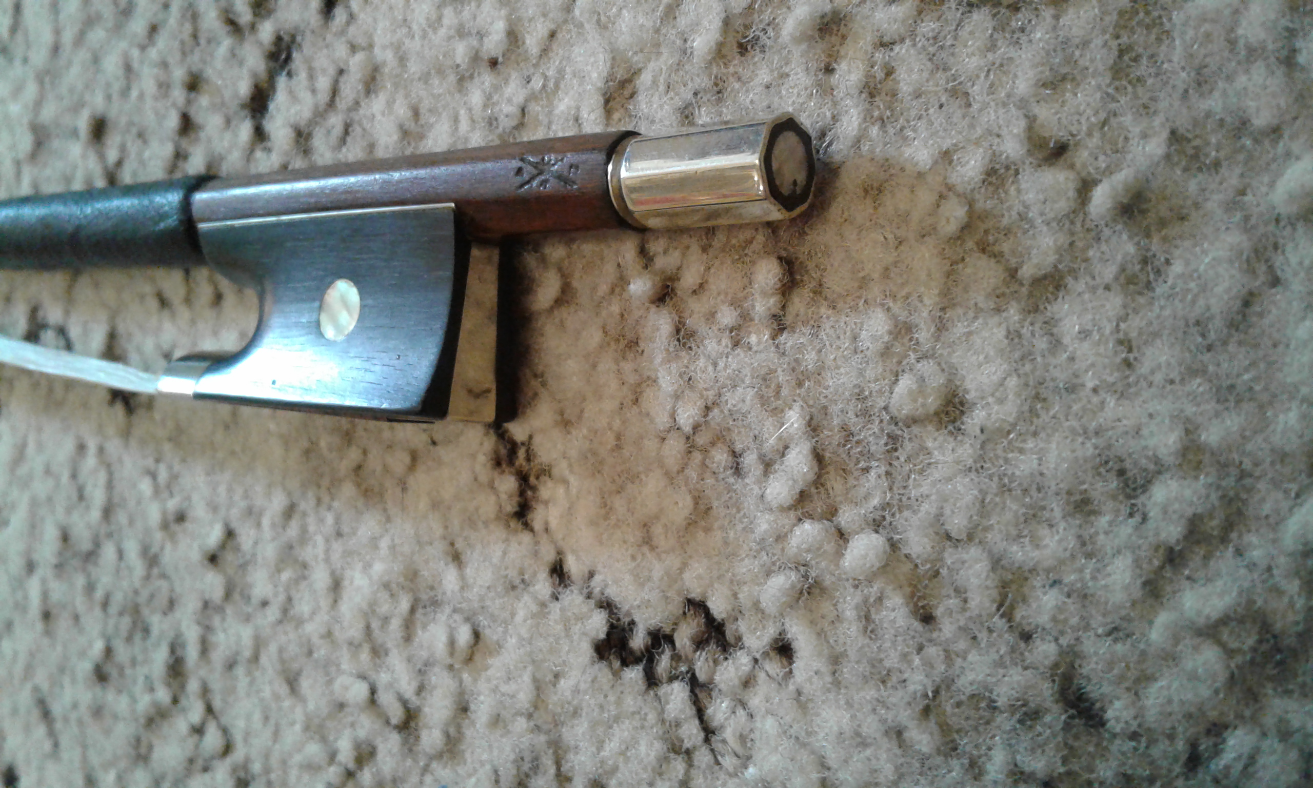 mám tento smyčec. Zajímá mě co je to zač. Myslím výrobce, jak je kvalitní, a pak jakou má asi cenu. Pro mě má samozdřejmě velkou cenu, neboť jsem jej prakticky zdědil. Takže nechci prodávat, ale zajímá mě to. Pan Opluštil, který mi jej opravoval mi řekl, že je dost kvalitní, z dobrého dřeva. Výrobce mi říkal, že si myslí že je to "Kala" ? Podle oražení. Jinak pravděpodobně ten smyčec hrál v Olomoucké filharmonii, někdy kolem roku 1950-1960? Ale to je jen na 50%. Ty roky jen tuším, možná že je to úplně jinak. Každopádně to prý není žádný šunt. Děkuji za reakce.
