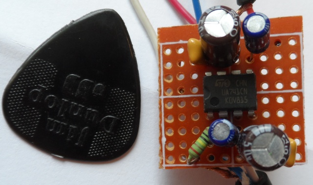 Tu jsem nahrál krátký mix čistého zvuku ze sledovače a zkresleného z efektu, mixovat lze na dva způsoby, jak je to v ukázce, že jeden signál se ubírá a přitom se druhý zesiluje,tam stačí jeden jednoduchý nebo dvojitý potenciometr, nebo prostěl ibovolnou úrovní každého zvuku zvlášť, tam je potřeba dvou nezávislých potenciometrů (ale dají se koupit i ve formě dvojpotenciometru aby zabraly jen jednu pozici)