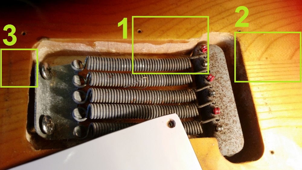 Taky mám dojem, že fotka s pružinami nepatří k té prodávané kytaře, viz kresbu dřeva a úplně jiný zadní plastový deklík. Takže kupce čeká vrstvené překvapení.