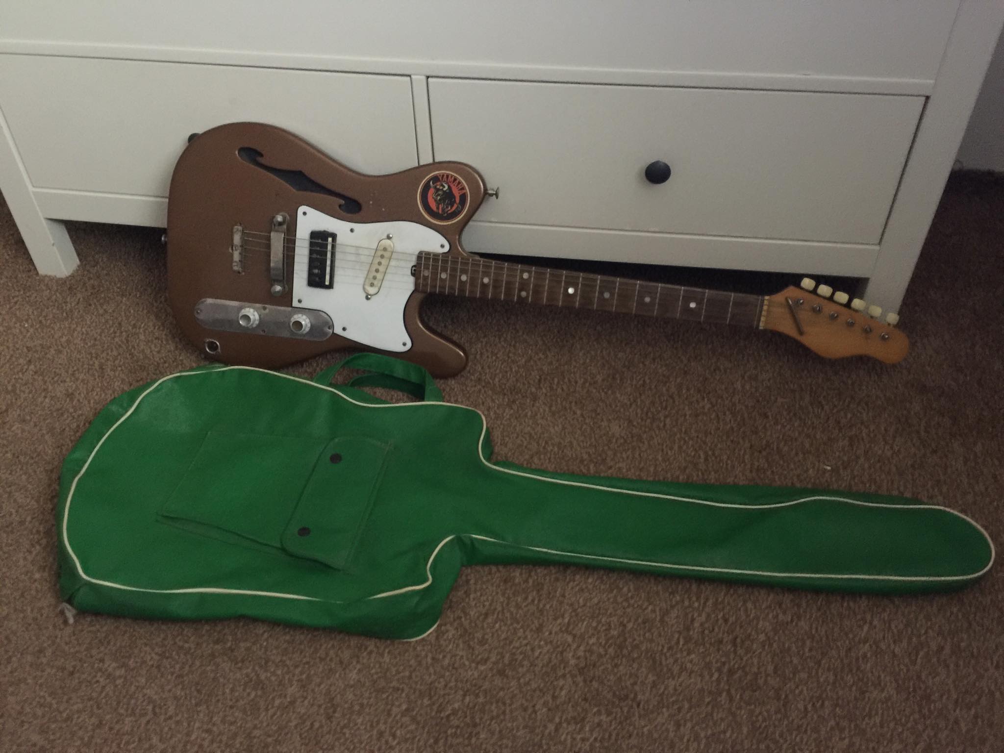 Ahoj, jako bývalý majitel stejné kytary potvrzuji, že to je Jolana Vikomt. Bohužel takhle zbastlená mít moc velkou cenu nebude - já ji prodal před rokem (originál v naprosto funkčním stavu a jedinou vadou bylo pár škrábanců a bouchanců v laku) za 4 000 Kč.