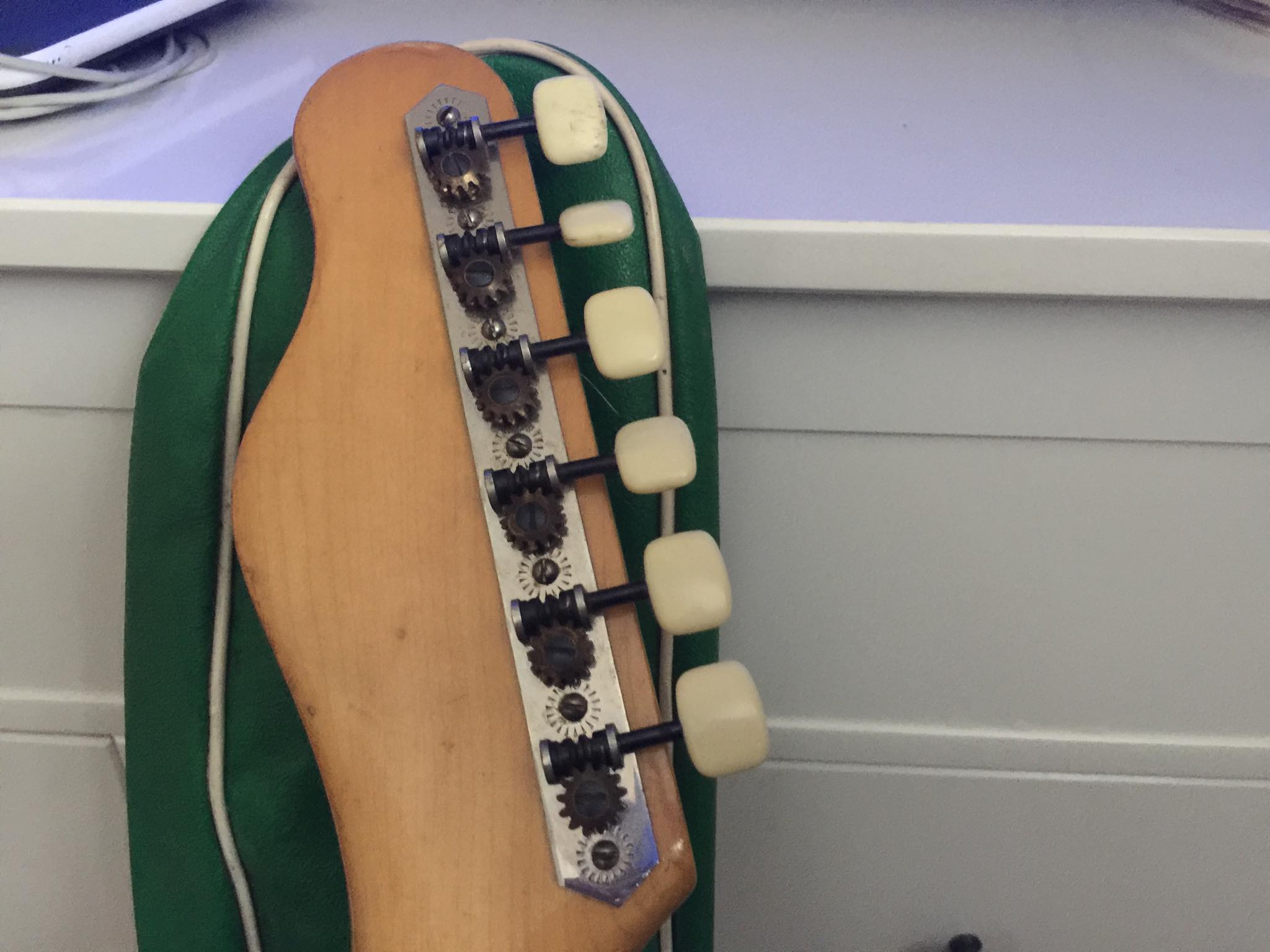 Souhlas s Hendrekem. Je to Vikomtka, s přidaným snímačem Brilant de Luxe (prodával se samostatně k namontování na španělu). Pětikolík je nejspíš taky přibastlený, majitel asi hrál do nějakého starého tesláckého zesilovače a místo redukce na kabelu ho napadlo vrtat do kytary.