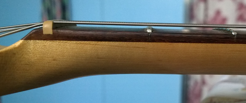 Jestli to bylo dřevem krku, nebo tím, že se čela matek napínacího šroubu noří do dřeva - těžko říct.