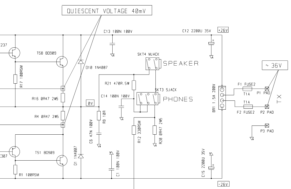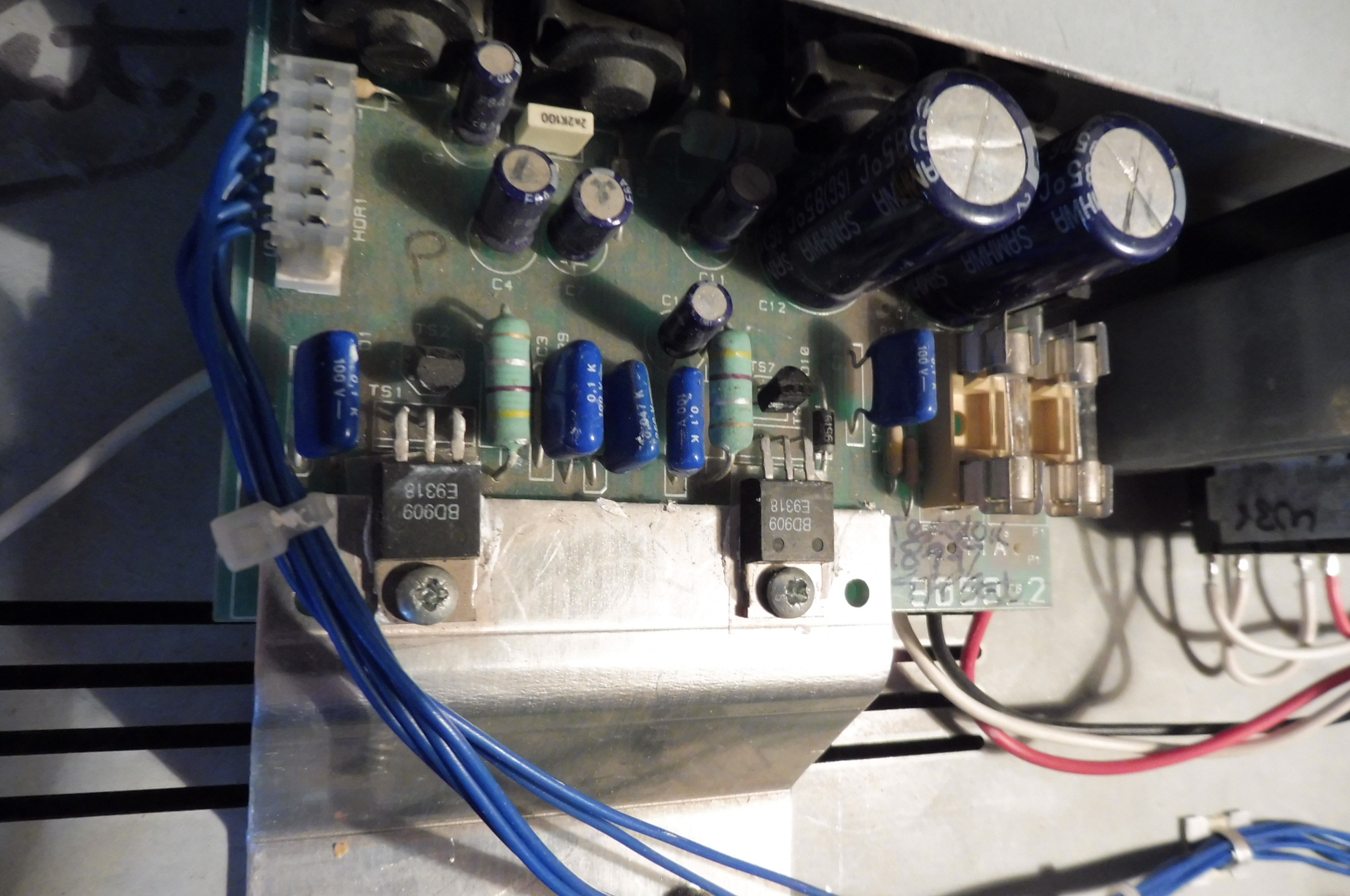 To torst: Nejdřív si změř při vypnutém kombu a od chladiče odšroubovaných BD909 a odehnutých tak, aby se nedotýkaly kovovou ploškou Al chladiče spojení chladiče se "zemí" GND. Al chladicí profil by měl být spojený s GND. Dále si kup nejlépe slídové (v nouzi jakési umělohmotné) podložky pod tranzistory, které ještě před montáží potři z obou stran tenoučkou vrstvičkou silikonové vazelíny pro zlepšení přestupu tepla, nemusí to být nutně ta bílá se stříbrem, stačí obyčejná průsvitná.