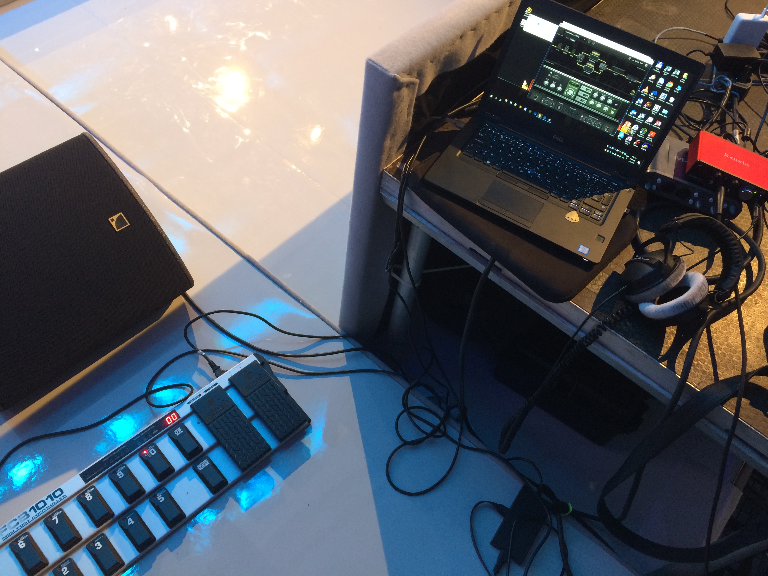 Squier Affinity Strat Junior HSS, Jet JS-300Mini, NuX Mighty Plug Pro, Mooer GWU4, Focusrite 2i2 3rdgen, Zoom AMS-22, Shure SRH-840A, JBL LSR 305P MKII, iLoud, iPad + pluginy