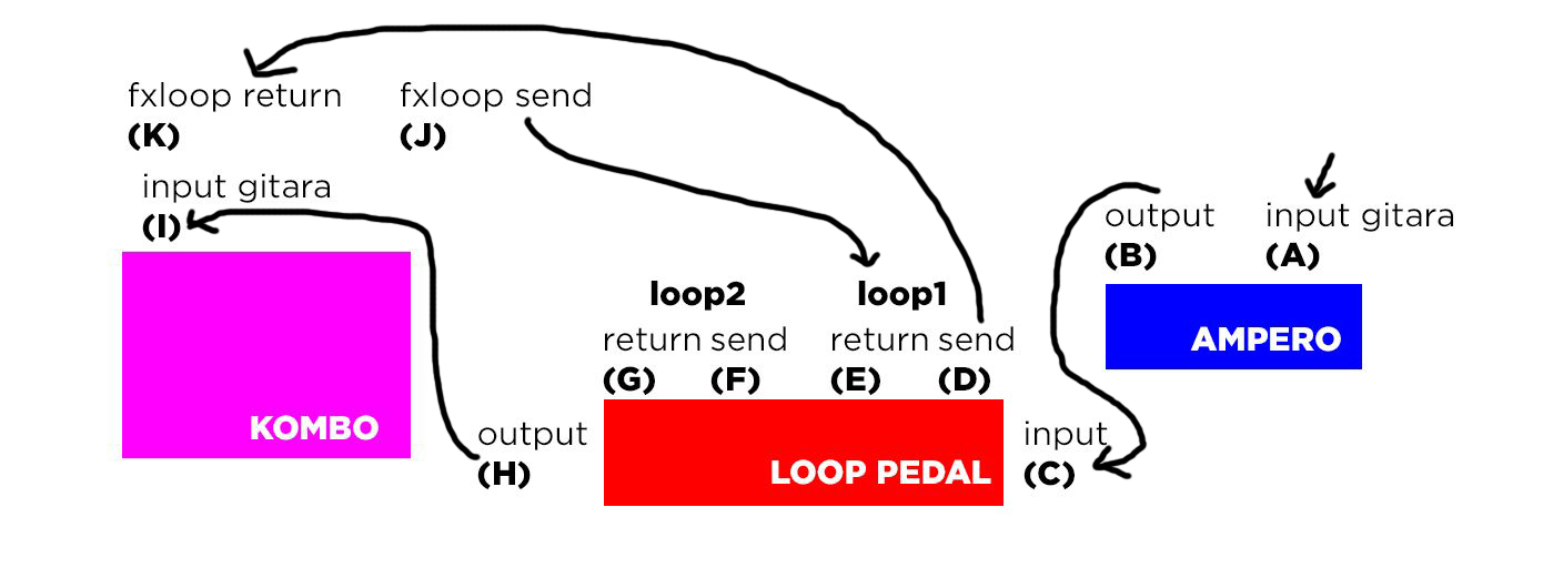 Myslím, že správný řešení už jsem postoval výše - spravne nebolo, zial nato by som potreboval loop pedal ktory vie zopnut obe smycky naraz, nie len 1 alebo 2.