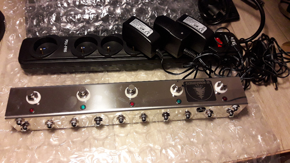 Vyrobeno v Číně, v AEG si snad přiměřenou kvalitu pohlídali, cena 400Kč+50 doprava na prodejnu. Krabičky umístím mezi bypass lištu a rozbočovač, na jednoduchý "rošt". Pedály wah a volume nechám pravděpodobně mimo, ale teď už to budu muset rozhodnout.
