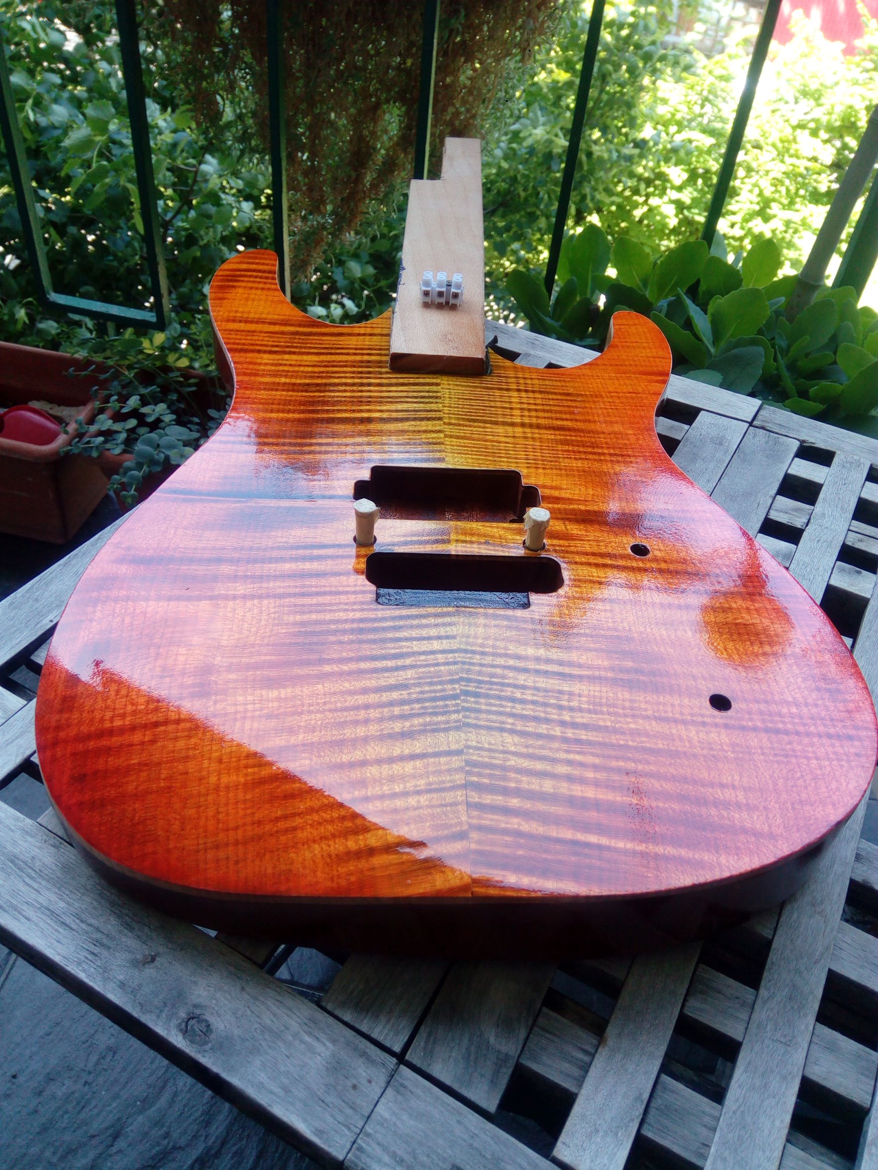 Skúsil som najprv zadnú stranu gitky, prednú treba ešte trochu opraviť a nalakovať. Jemný prebrus som robil s 4000 šmirglom. Normálne tvrdý bol ten lak.