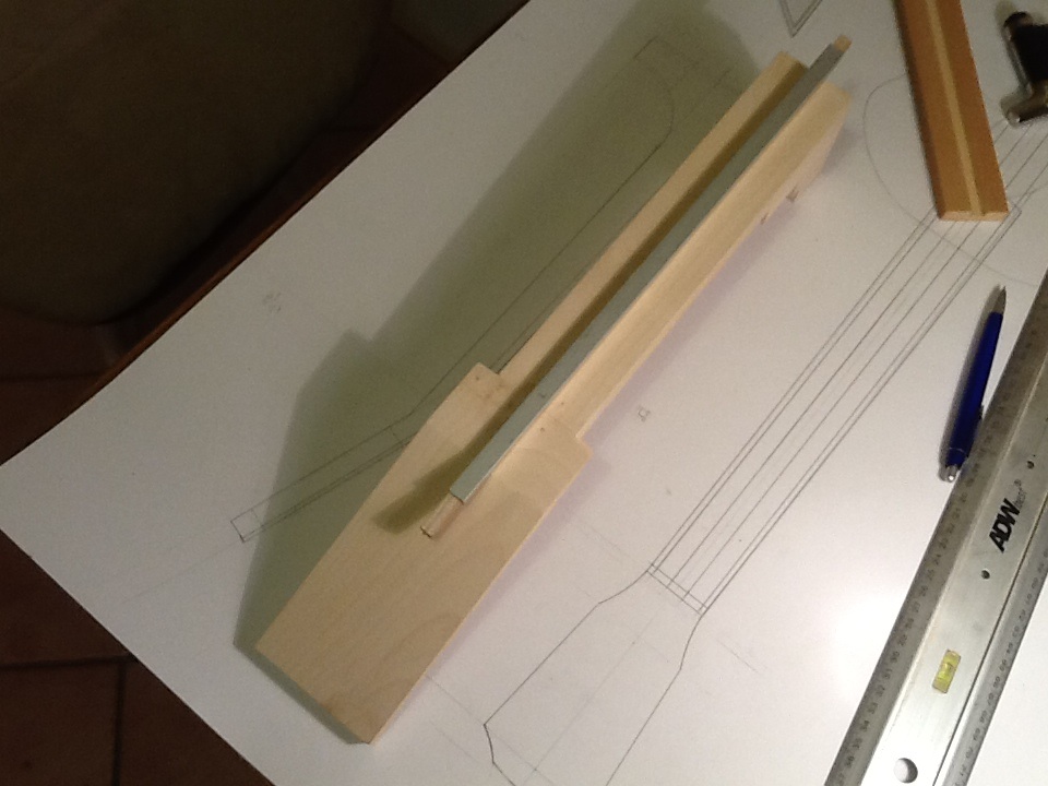 Výztuha zafrézovaná a epoxidem vlepená. Teď mě čeká výroba kopírovacích frézovacích šablon pro základní natvarování krku,patky a hlavy.