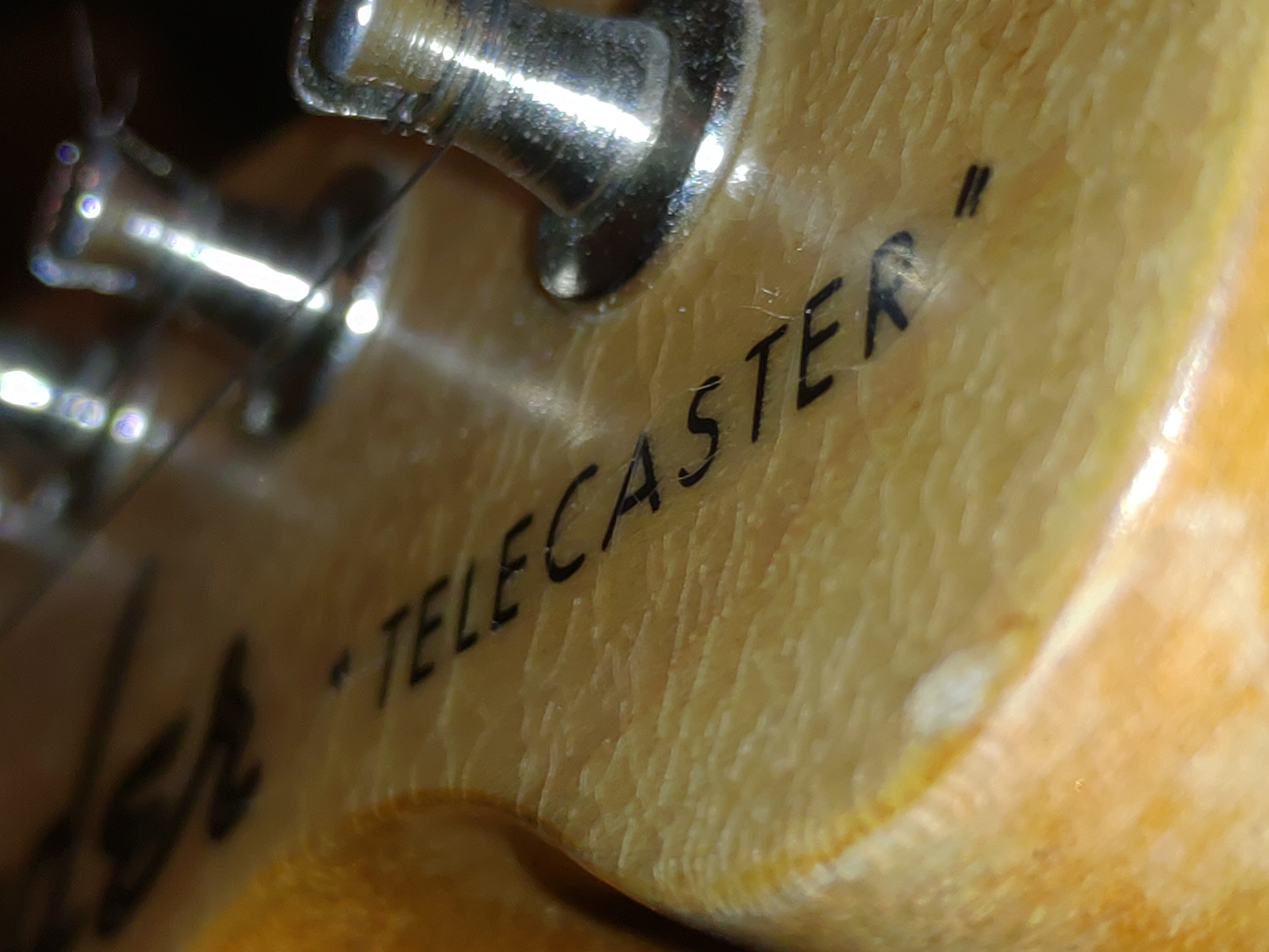 Nedávno jsem koupil Tele, ale po čase mi přišli podivné nějaké věci. Kytara nemá klasicky na hlavě (ani z jedné strany) sériové číslo, ani ,,made in,,. Když jsem se důkladněji podíval na nápis Fender "Telecaster" (také na hlavě), přišlo mi, jakoby to byla spíš dobře zpracovaná samolepka... Vypadá jako, kdyby to byla lehce (ale dobře) zalakovaná vrstva nad samotným lakem kytary. Umístění nápisu je taky trochu jinde (to se však u různých sérii mění).