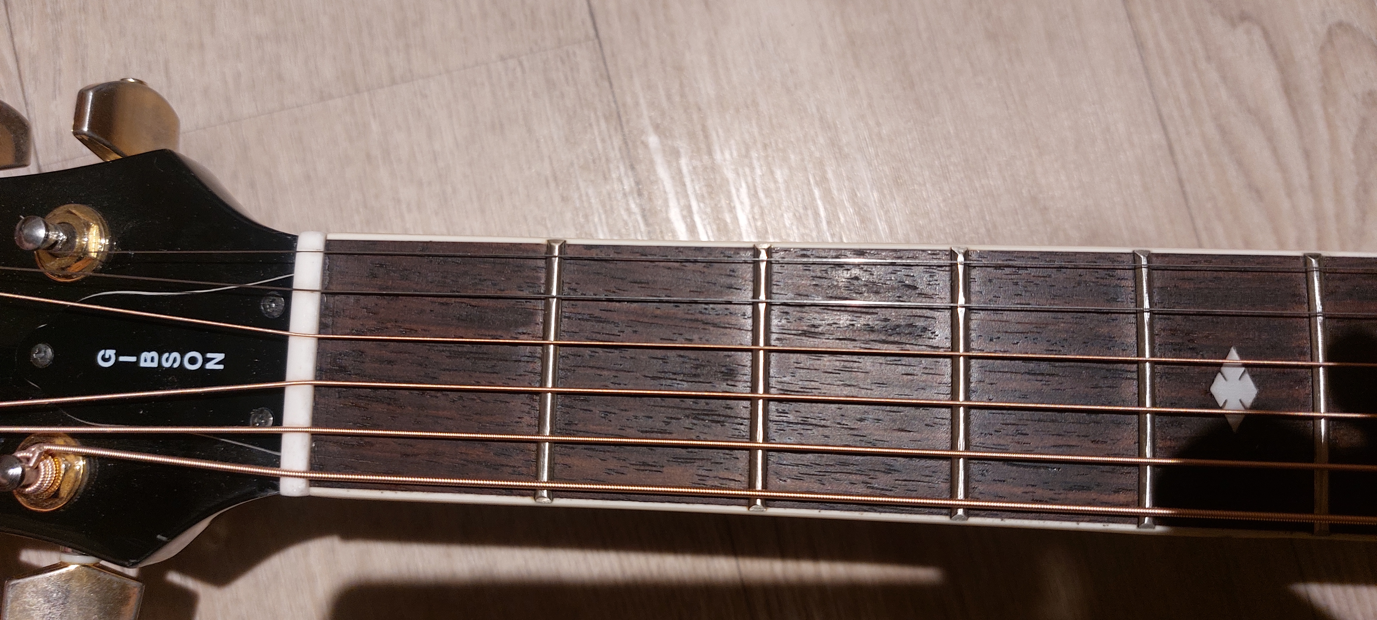 Asi i díky novému nultému a kobylkovému pražci z kosti (předtím plast) to hraje o dost líp, než před zlomením krku. 011 struny nejsou limitem, spíše opatrným doporučením. Já jsem s výsledkem spokojený, ale ta nová Taylorka fakt hraje o dost líp...