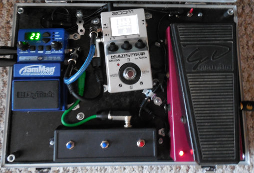 Efekty: Smrčka Compressor, Boss DS-1 (Bill Kasper mod), Boss DS-2 (Japan), EHX Big Muff (w/ Tone Wicker), MXR Micro Amp, Ibanez WH10 (black), MXR Analog Chorus, MXR Phase 100, Boss DD-7, EHX Holy Grail Plus