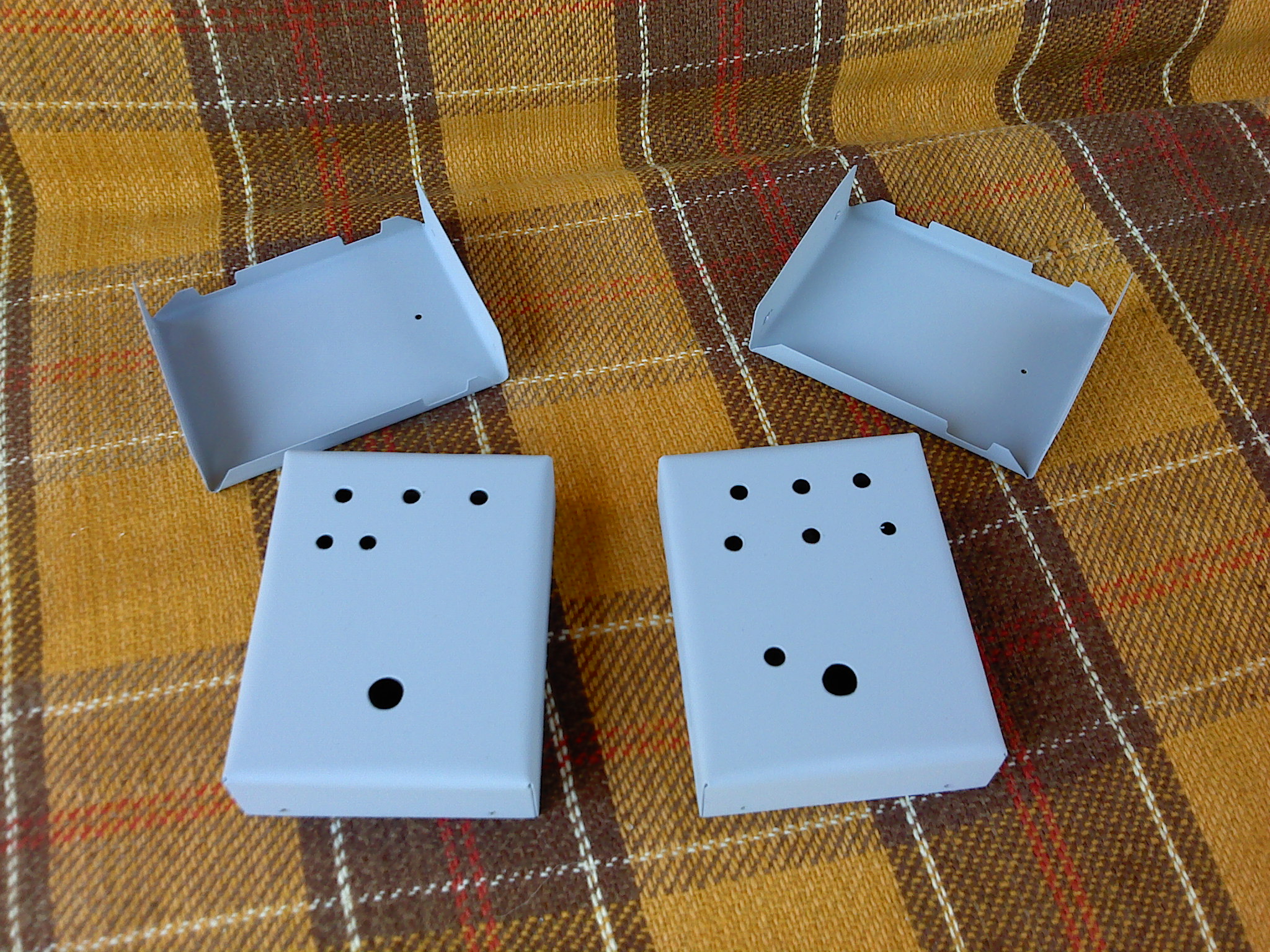 Já si dělám krabičky na efektíky sám z 1mm plechu ohýbanýho ve svěráku a nebo využívám starý teslácký síťový filtry WN852 02.