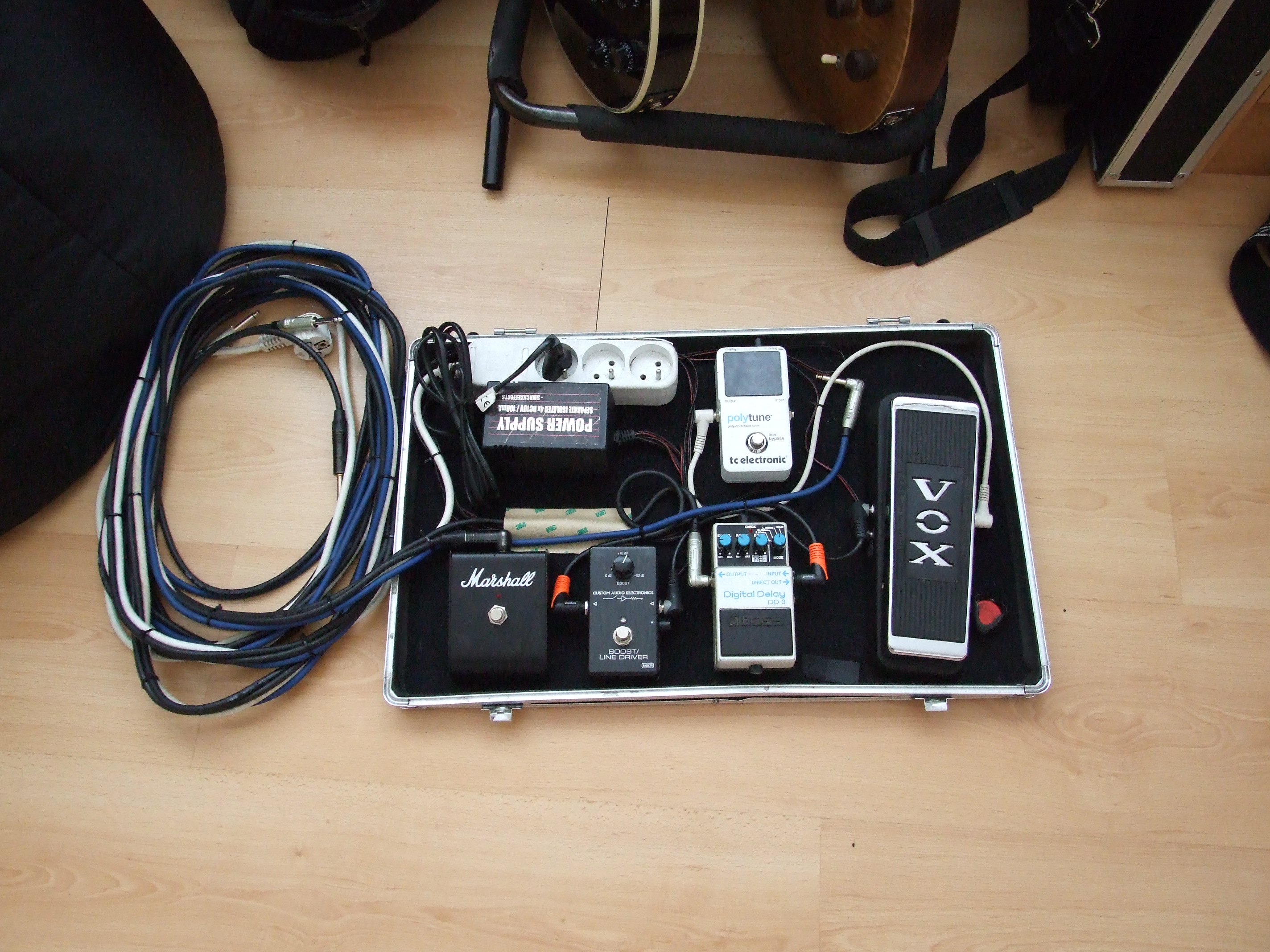 PS: abych nebyl mimo téma, můj pedalboard je zatím ve stádiu vývoje. Chybí finance na POG a looper (a board).