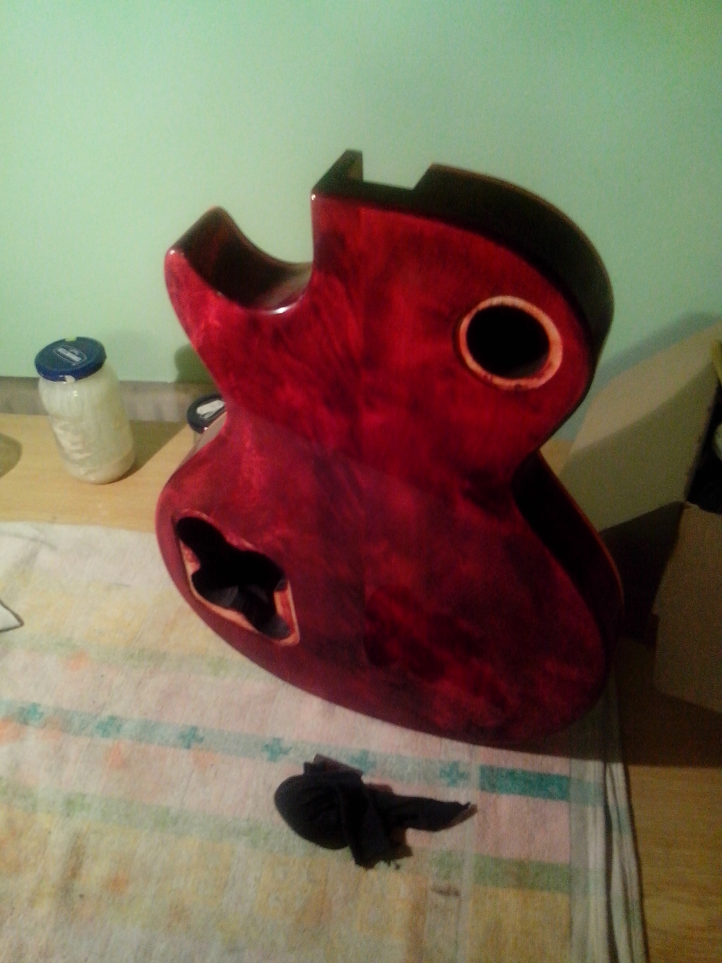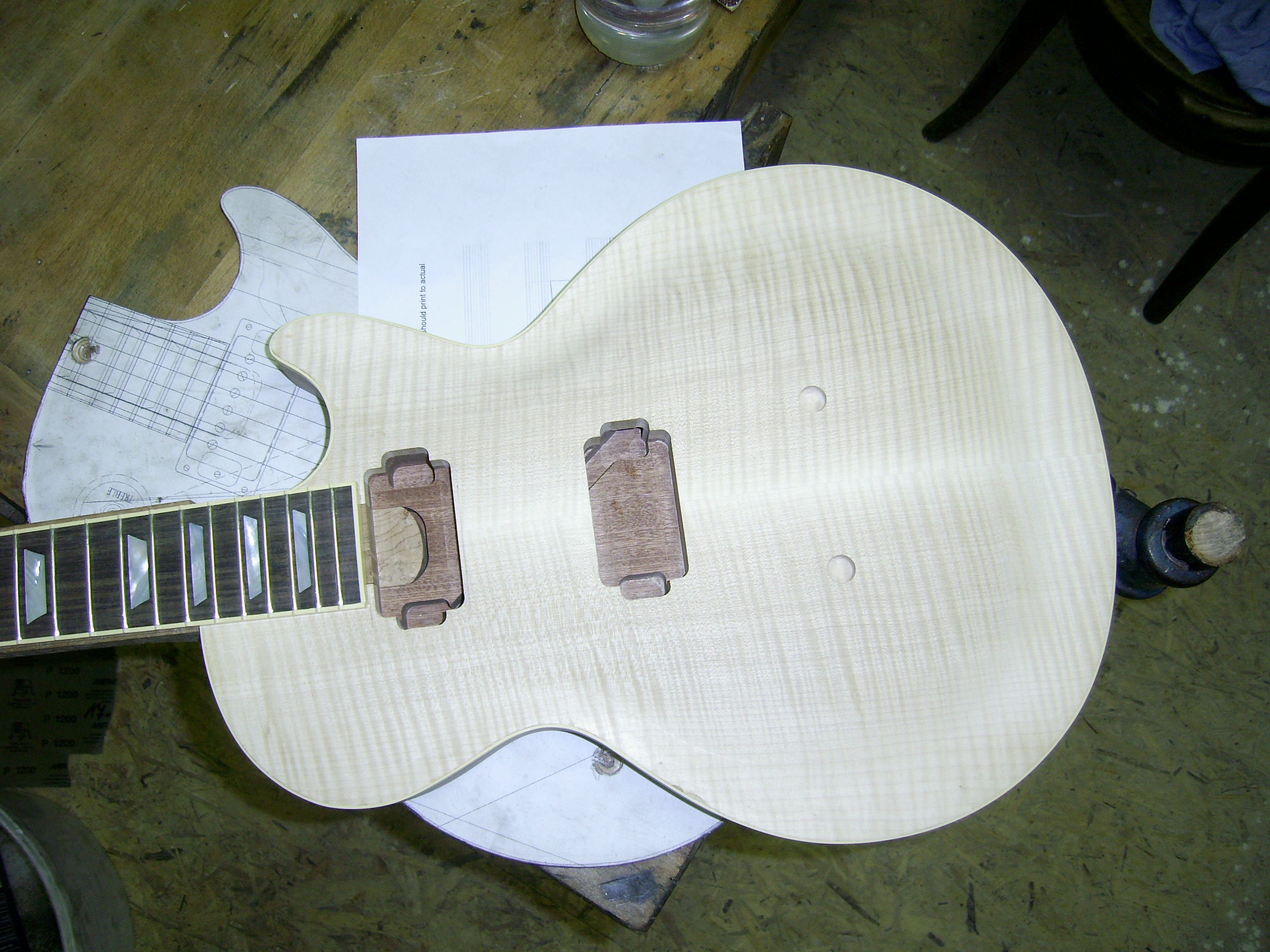 Čau všichni, jen tak posílám pár cca týden starých fotek, dnes již mám nalepený hmatník a eben na hlavě kytary, vyvrtaný díry na potenciometry a na přepínač - to vše ještě vyfotím. :)